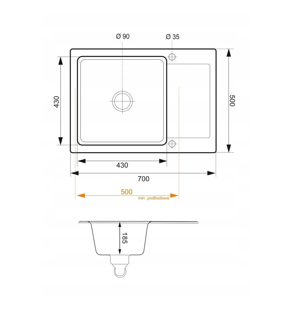 - Typ zlewu: 1-komorowy z ociekaczem
