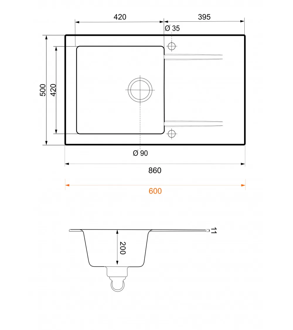 - Dodatkowo w zestawie: karta gwarancyjna, szablon wycięcia otworu pod montaż zlewozmywaka, syfon zlewozmywakowy z automatycznym sterowaniem korka