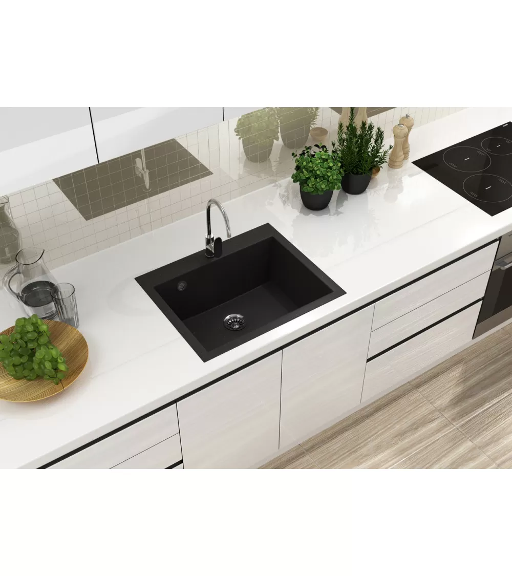 - Oszczędność miejsca – kompaktowy, 1‑komorowy zlewozmywak granitowy idealny do mniejszych blatów.
