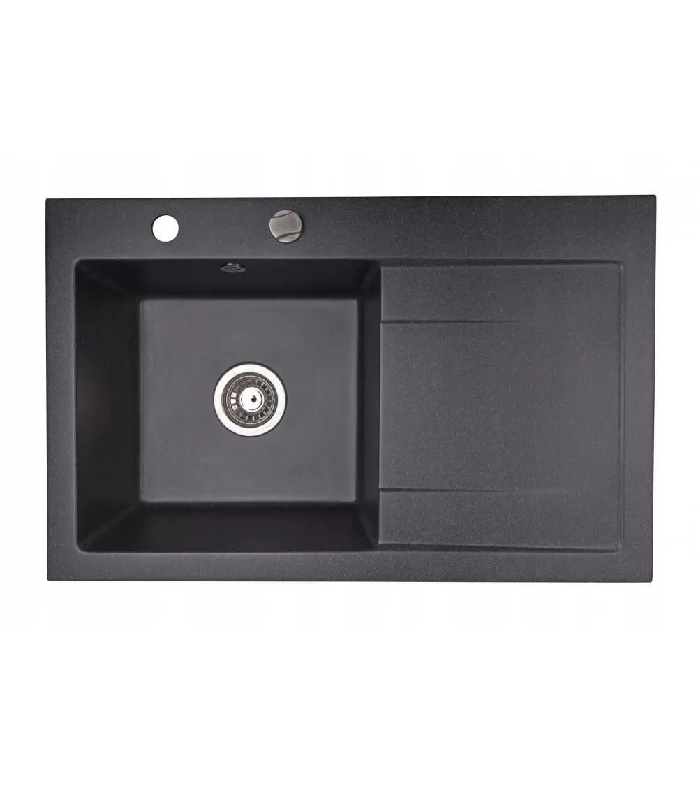 Zlewozmywak granitowy BRENOR MINGUS 80L 79,5 X 50,5 CM- jednokomorowy czarny metalik