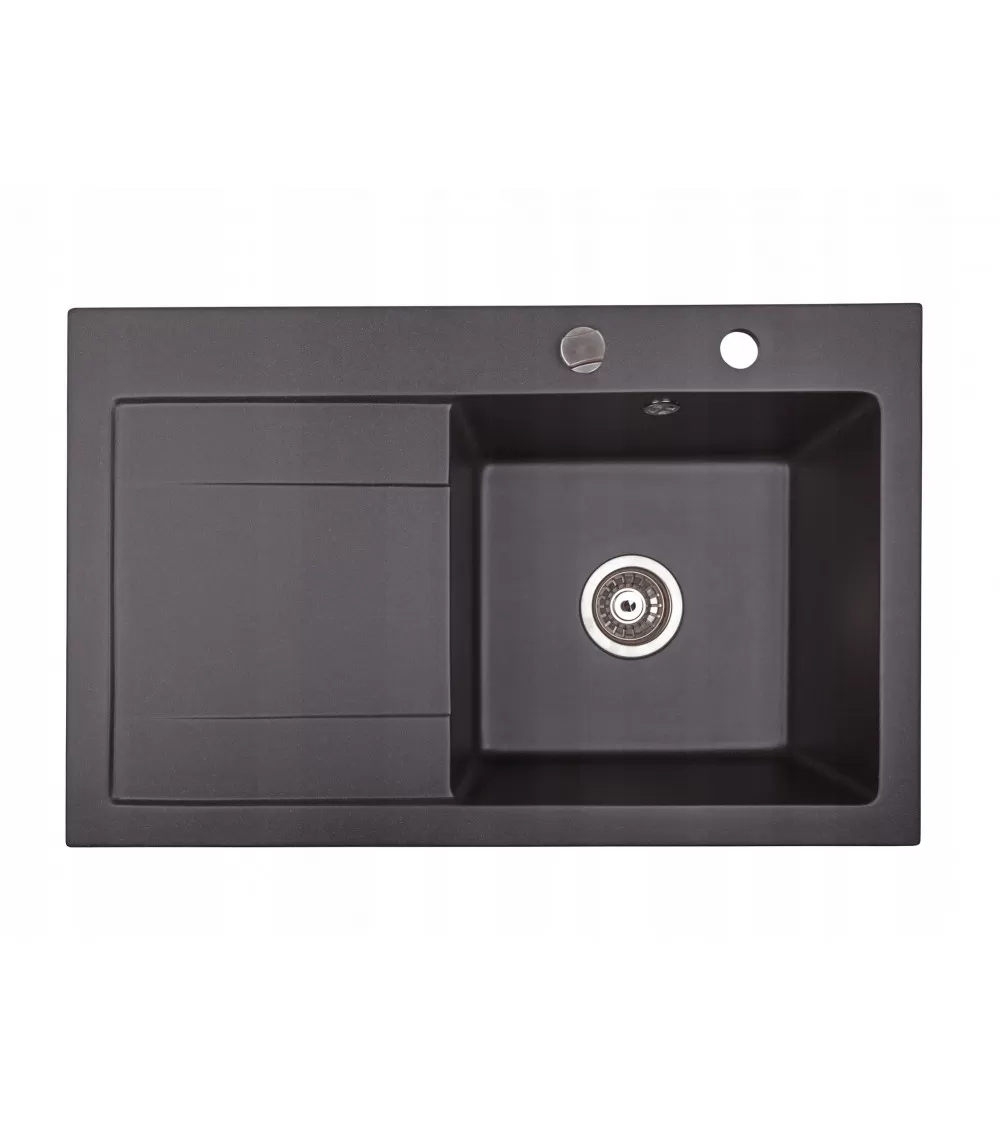 Zlewozmywak granitowy BRENOR MINGUS 80P 79,5 X 50,5 CM- jednokomorowy czarny metalik
