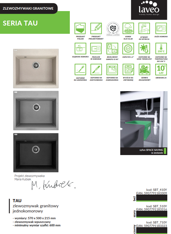 Trwały zlewozmywak granitowy LAVEO Tau – odporność na codzienne użytkowanie