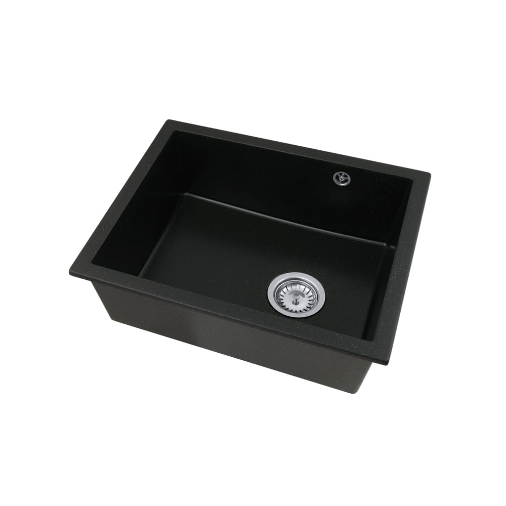 Zlewozmywak granitowy LAVRE DECOR 50x40 czarny nakrapiany złoty to jednokomorowy zlew kuchenny, który łączy minimalistyczny design z wysoką funkcjonalnością. Głęboka komora i nowoczesny odpływ sprawiają, że codzienne zmywanie, płukanie warzyw czy napełnianie garnków staje się wygodne i szybkie.