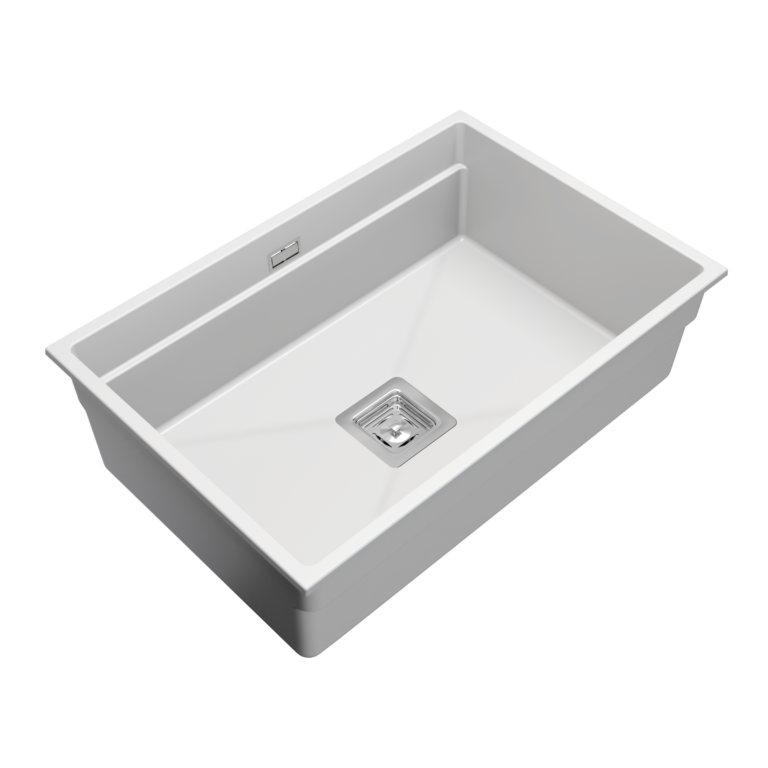Zlewozmywak granitowy LAVRE DECOR 70x50 biały to połączenie minimalistycznego designu i wysokiej trwałości. Jednokomorowy zlew podwieszany pod blat idealnie wpisuje się w nowoczesne i klasyczne kuchnie, zapewniając wygodę codziennego użytkowania oraz estetyczny, spójny wygląd blatu.