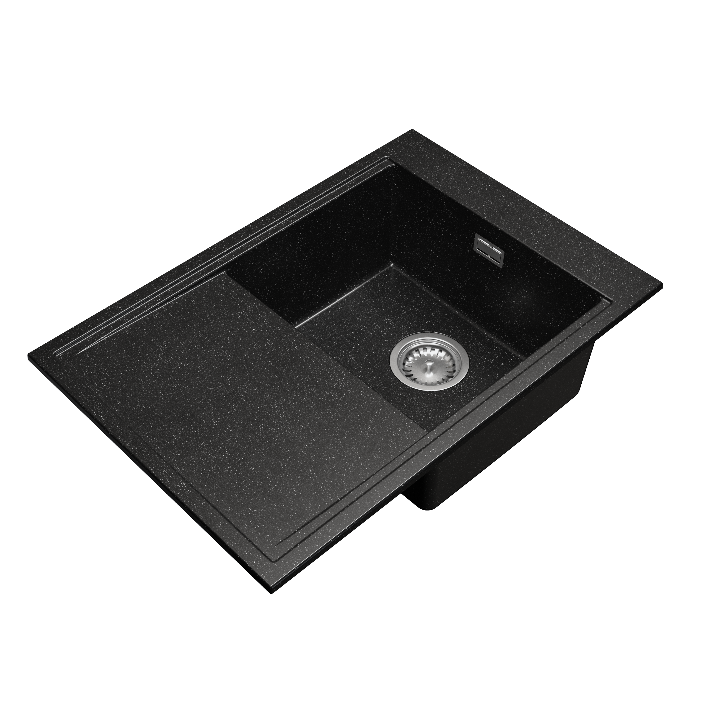 Zlewozmywak granitowy 70x50 z ociekaczem – elegancki czarny nakrapiany
