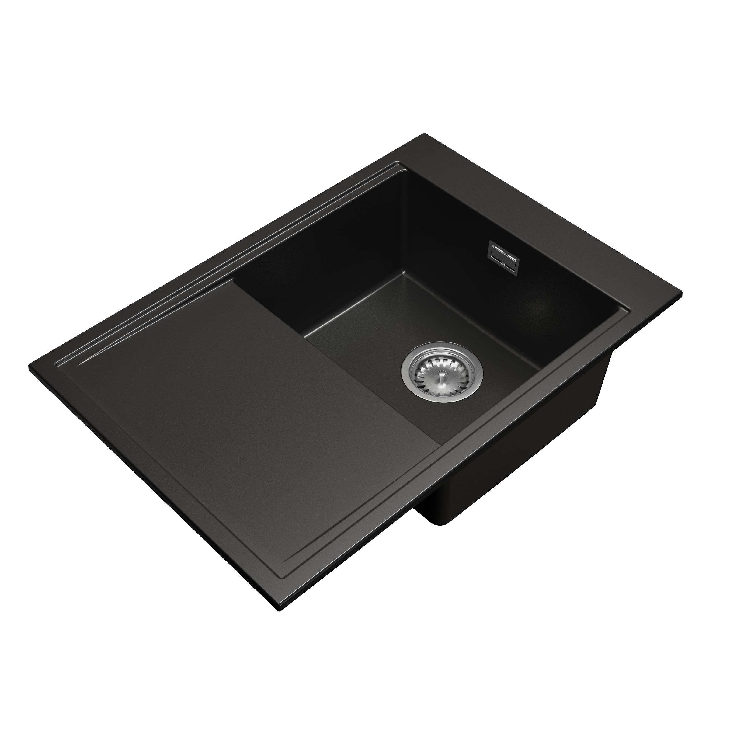 Zlewozmywak granitowy LAVRE DESIGN 70x50 CZARNY - Zlew kuchenny jednokomorowy z ociekaczem