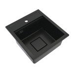 Zlewozmywak granitowy LAVRE QUADRO 45x50 w kolorze czarnym nakrapianym złotym to kompaktowy, jednokomorowy zlew kuchenny, który łączy minimalistyczny design z wysoką trwałością. Geometryczna forma, nowoczesny kwadratowy odpływ oraz subtelne złote drobinki sprawiają, że zlew staje się wyrazistym elementem blatu, pasującym zarówno do kuchni nowoczesnych, jak i klasycznych.