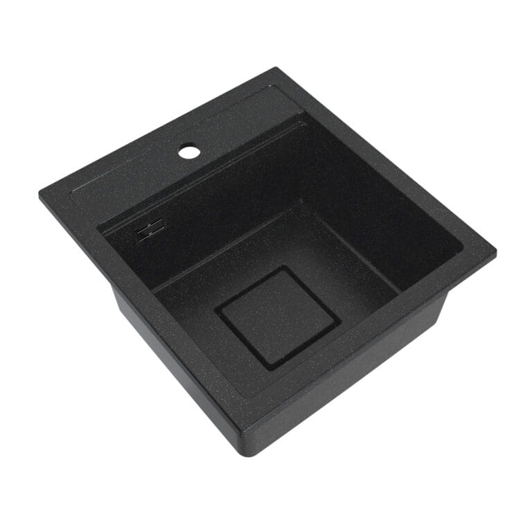 Zlewozmywak granitowy czarny nakrapiany 45x50 – funkcjonalny zlew kuchenny jednokomorowy