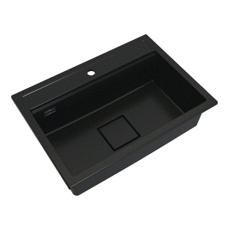 Zlewozmywak granitowy LAVRE QUADRO 70x50 to jednokomorowy zlew kuchenny, który łączy minimalistyczny design z wysoką odpornością na codzienne użytkowanie. Głęboka, wygodna komora oraz szlachetny, czarny kolor nakrapiany złotem tworzą nowoczesny akcent pasujący zarówno do kuchni loftowych, jak i klasycznych.
