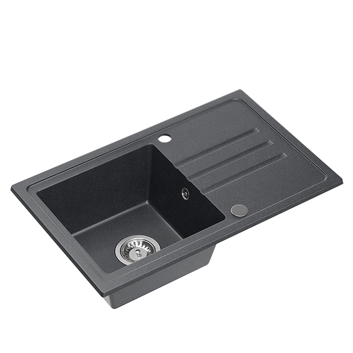 Zlew wykonany jest z kompozytu na bazie cząsteczek granitu i wysokiej jakości spoiwa. Dzięki temu zlewozmywak granitowy 70x44 jest odporny na zarysowania, uderzenia, wysoką temperaturę oraz przebarwienia. Gładka, nieporowata powierzchnia ułatwia czyszczenie i ogranicza osadzanie kamienia oraz zabrudzeń.
