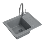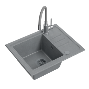 Zlewozmywak granitowy QUADRON BEN 116 55x44 SZARY - Zlew kuchenny jednokomorowy z baterią MAGGIE z elastyczną wylewką kolor szary + syfon szary + zaślepka szara