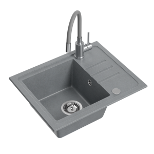 Zlewozmywak granitowy QUADRON BEN 116 55x44 SZARY - Zlew kuchenny jednokomorowy z baterią MAGGIE z elastyczną wylewką kolor szary + syfon + zaślepka
