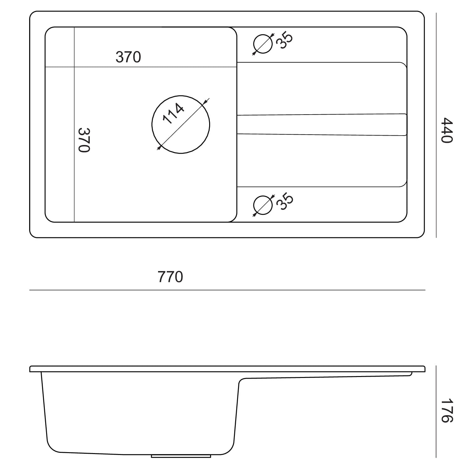 - Wymiary zlewozmywaka: 77 x 44 cm – idealne do szafek o standardowej szerokości, z miejscem na wygodny ociekacz.
