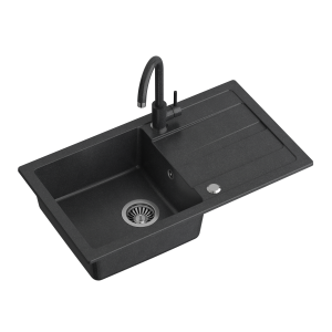 - Spójny design – czarny zlew kuchenny z dopasowaną baterią tworzy elegancki, nowoczesny zestaw.