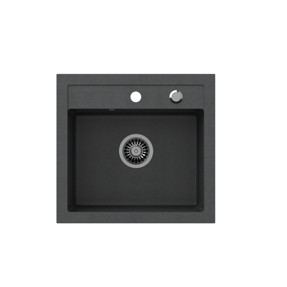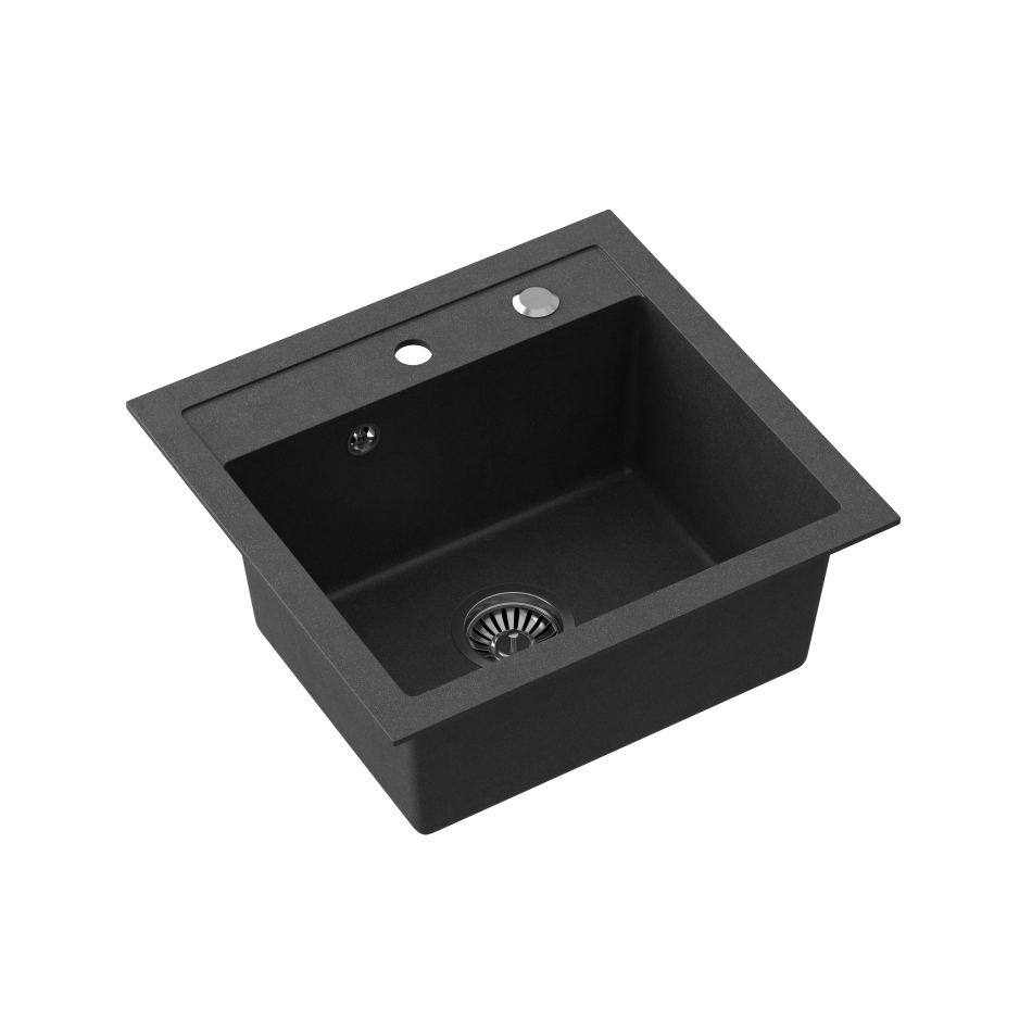 - Zlewozmywak granitowy czarny 50 x 47 cm, głębokość komory 18,5 cm