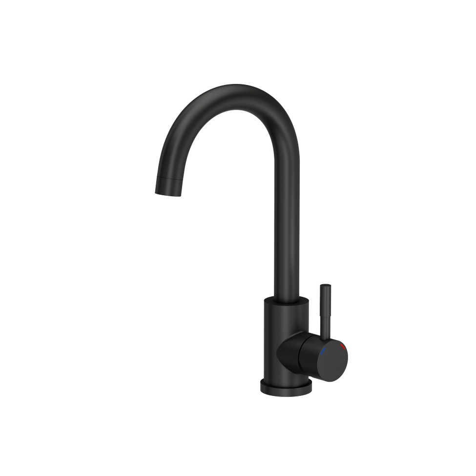 W komplecie otrzymujesz baterię kuchenną z serii Kate w matowej czerni, idealnie dopasowaną do koloru zlewozmywaka. Wysoka, wygięta w łuk wylewka zapewnia komfortowe mycie naczyń i napełnianie wysokich garnków, a ceramiczna głowica gwarantuje płynną regulację strumienia i długą żywotność.