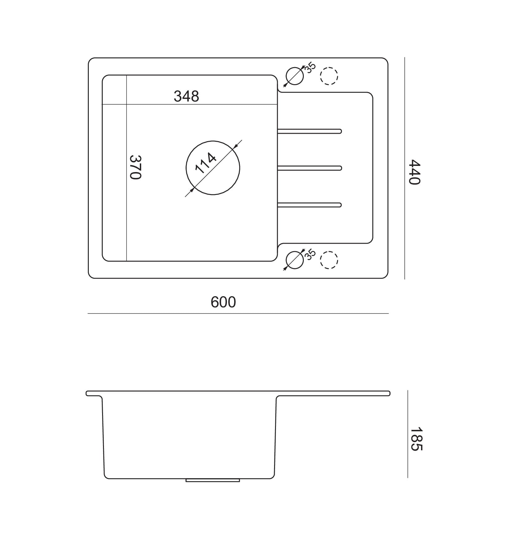 Przemyślane wymiary 60 x 44 cm i głębokość komory ok. 18,5 cm sprawiają, że zlewozmywak jest kompaktowy, ale wciąż wygodny do codziennych prac kuchennych – od mycia naczyń po płukanie warzyw i większych garnków.