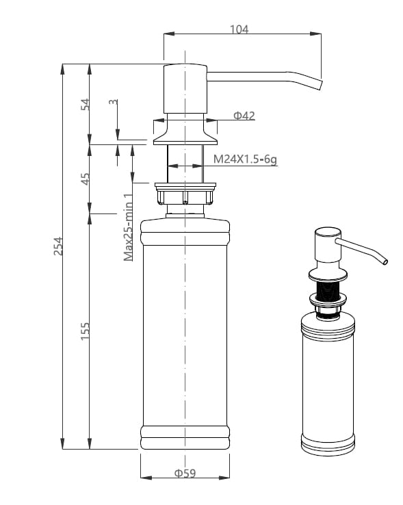 - Dozownik do płynu 320 ml – czarny, montowany w blacie lub rancie zlewu.