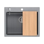 Wewnątrz komory zastosowano dodatkowy rant, na którym opierają się mata, wkładka ociekowa i deska. Dzięki temu zlew kuchenny jednokomorowy zamienia się w wielofunkcyjne miejsce do krojenia, płukania i suszenia.