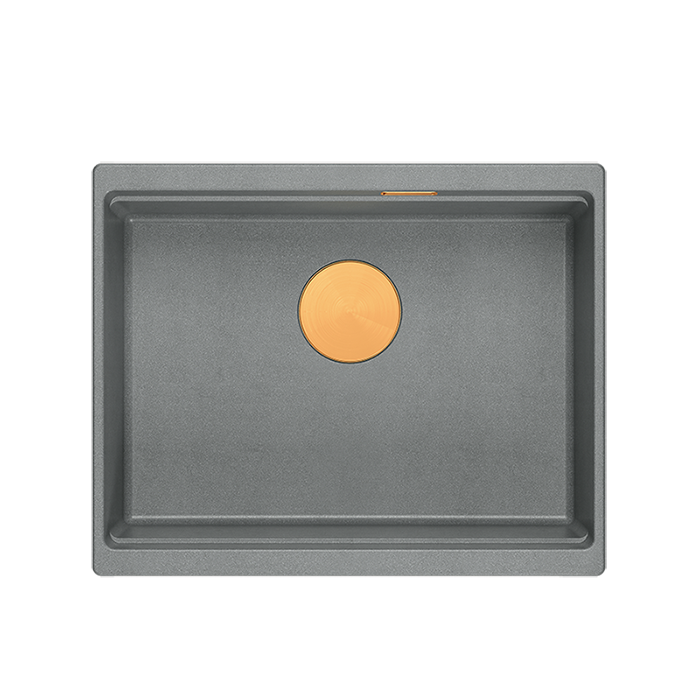 Szary kolor SILVER STONE jest elegancki i uniwersalny – świetnie komponuje się zarówno z jasnymi, jak i ciemnymi blatami. Miedziany odpływ i element przelewu dodają całości charakteru premium, idealnie współgrając z modnymi bateriami kuchennymi w odcieniach złota, miedzi czy szczotkowanej stali.