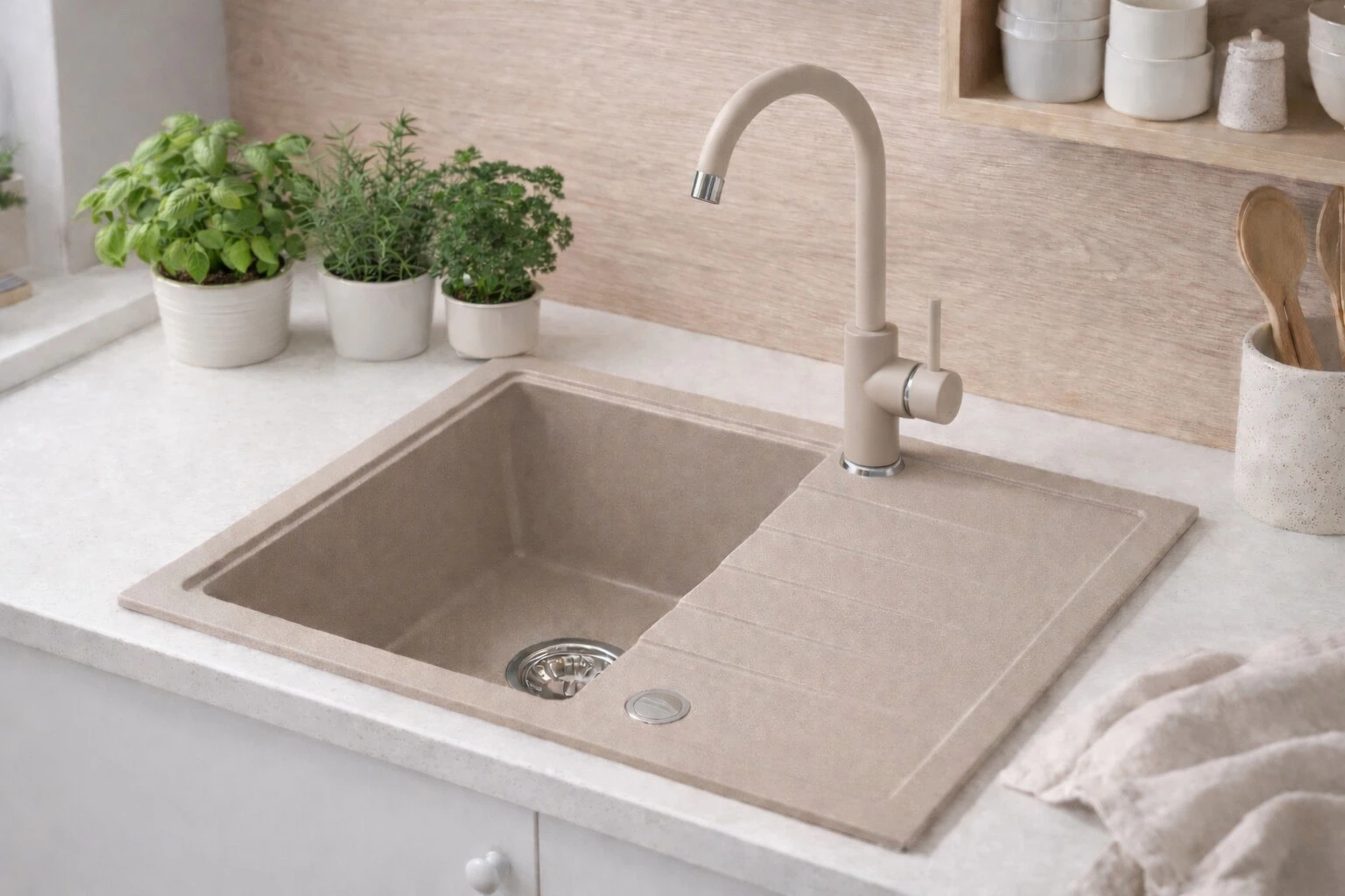 Zlewozmywak granitowy RUVETTI AXEL 120 65x50 cm beżowy - zlew 1-komorowy