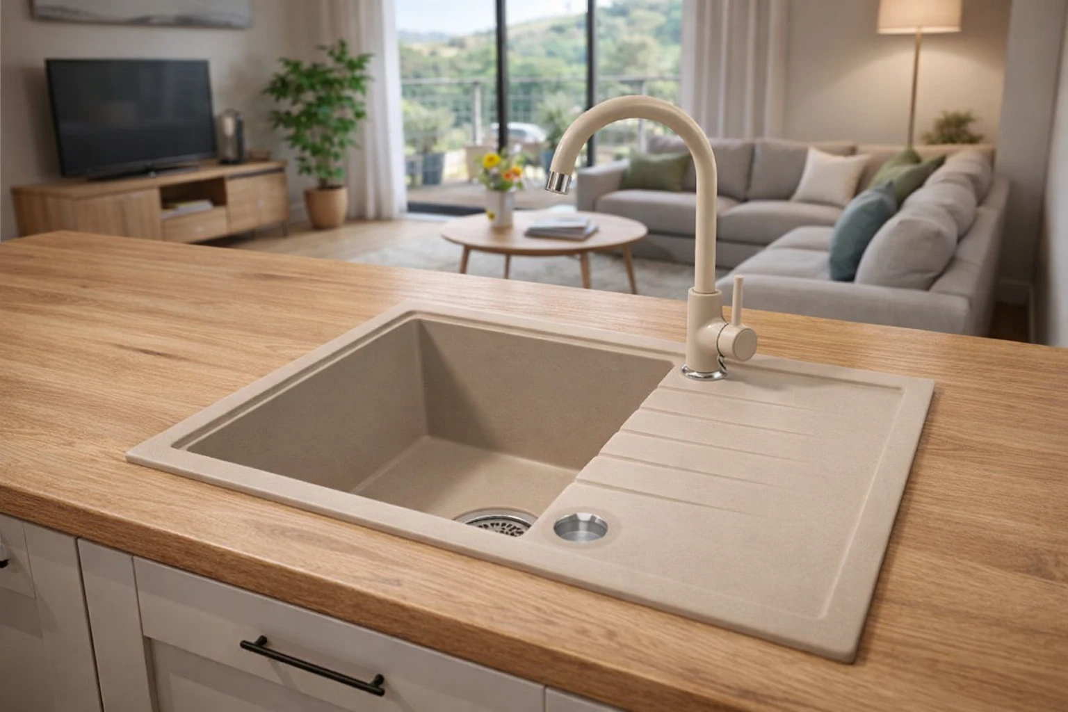 Zlewozmywak granitowy RUVETTI AXEL 140 68x49,5 cm beżowy - zlew 1-komorowy