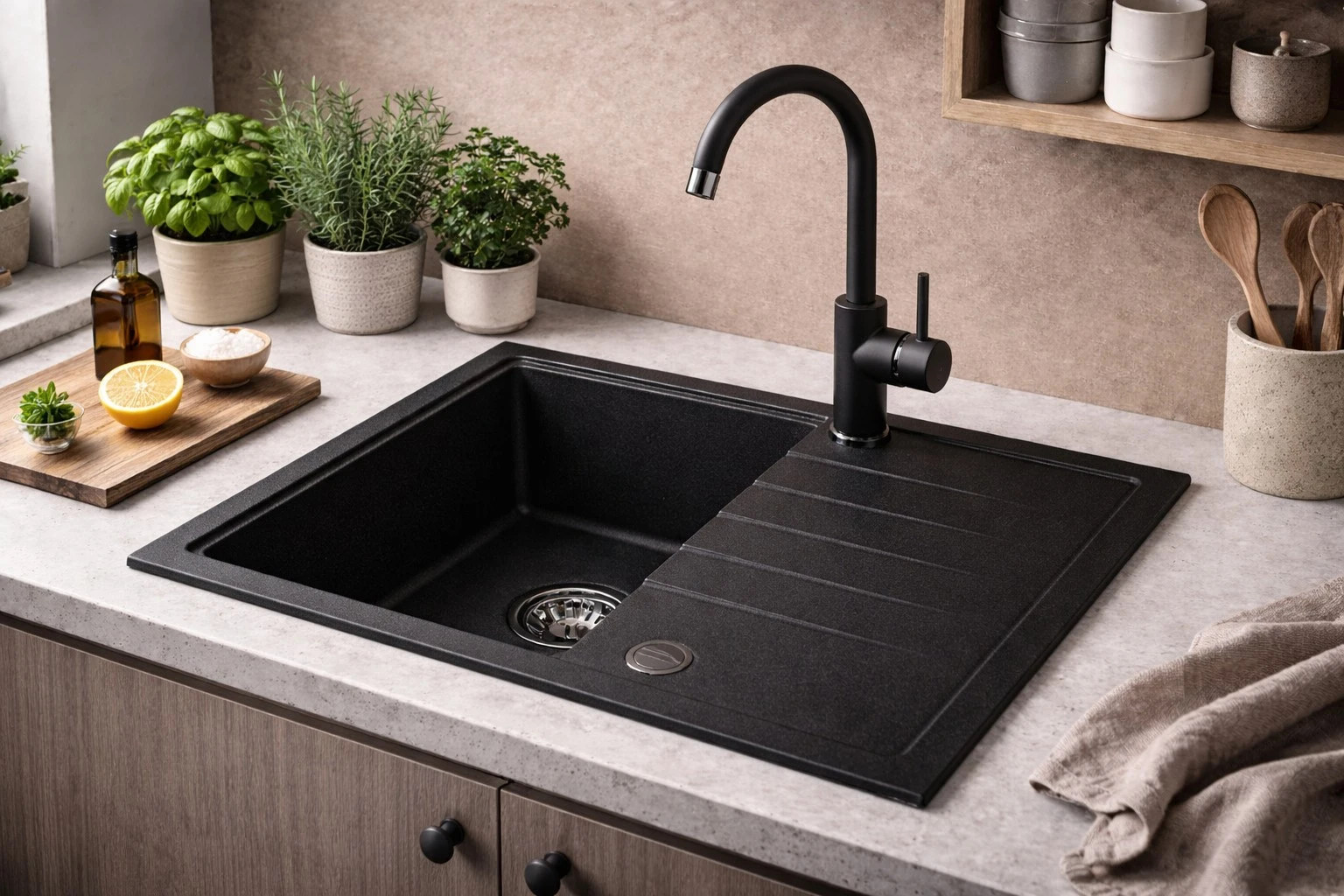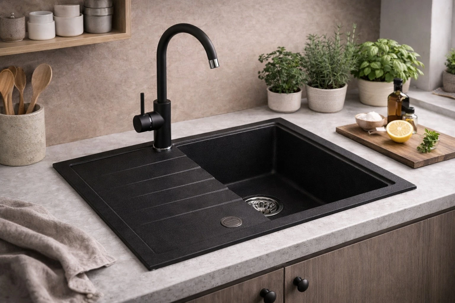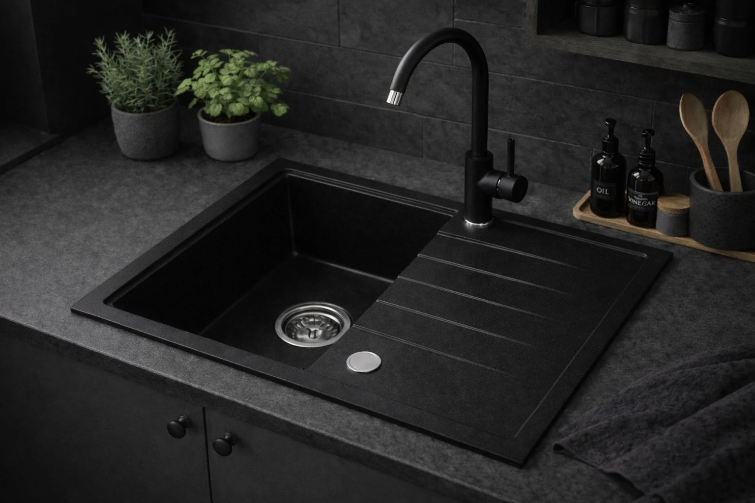 Zlewozmywak granitowy RUVETTI AXEL 140 68x49,5 cm czarny - zlew 1-komorowy