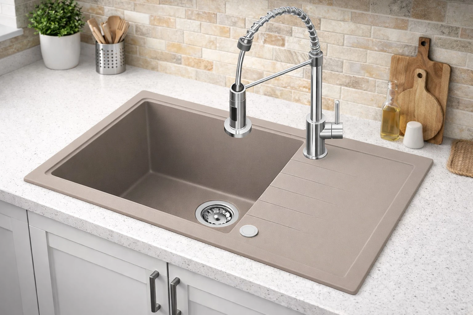 Zlewozmywak granitowy RUVETTI AXEL 160 XL 78x50 cm beżowy - zlew 1-komorowy