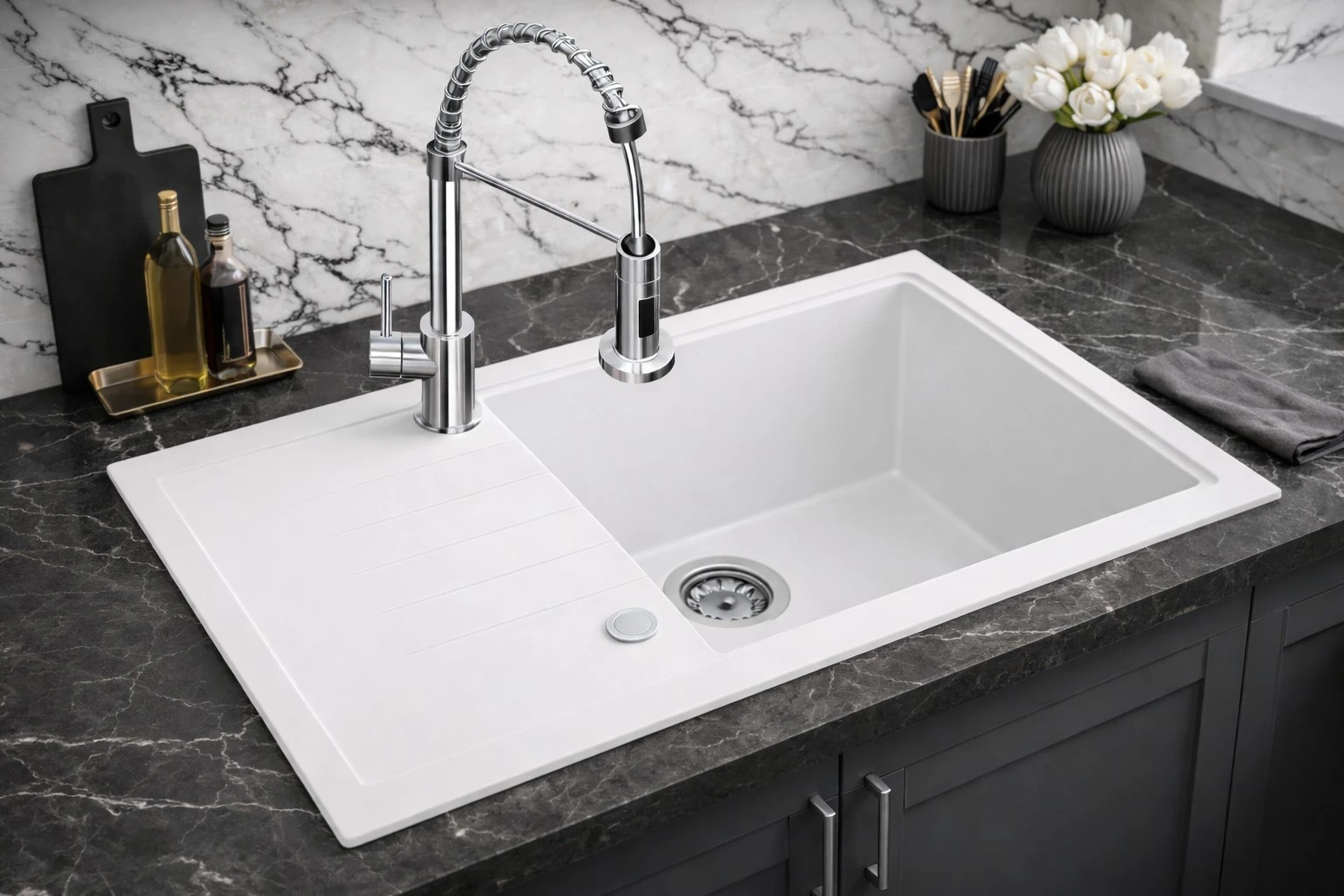 Zlewozmywak granitowy RUVETTI AXEL 160 XL 78x50 cm biały - zlew 1-komorowy