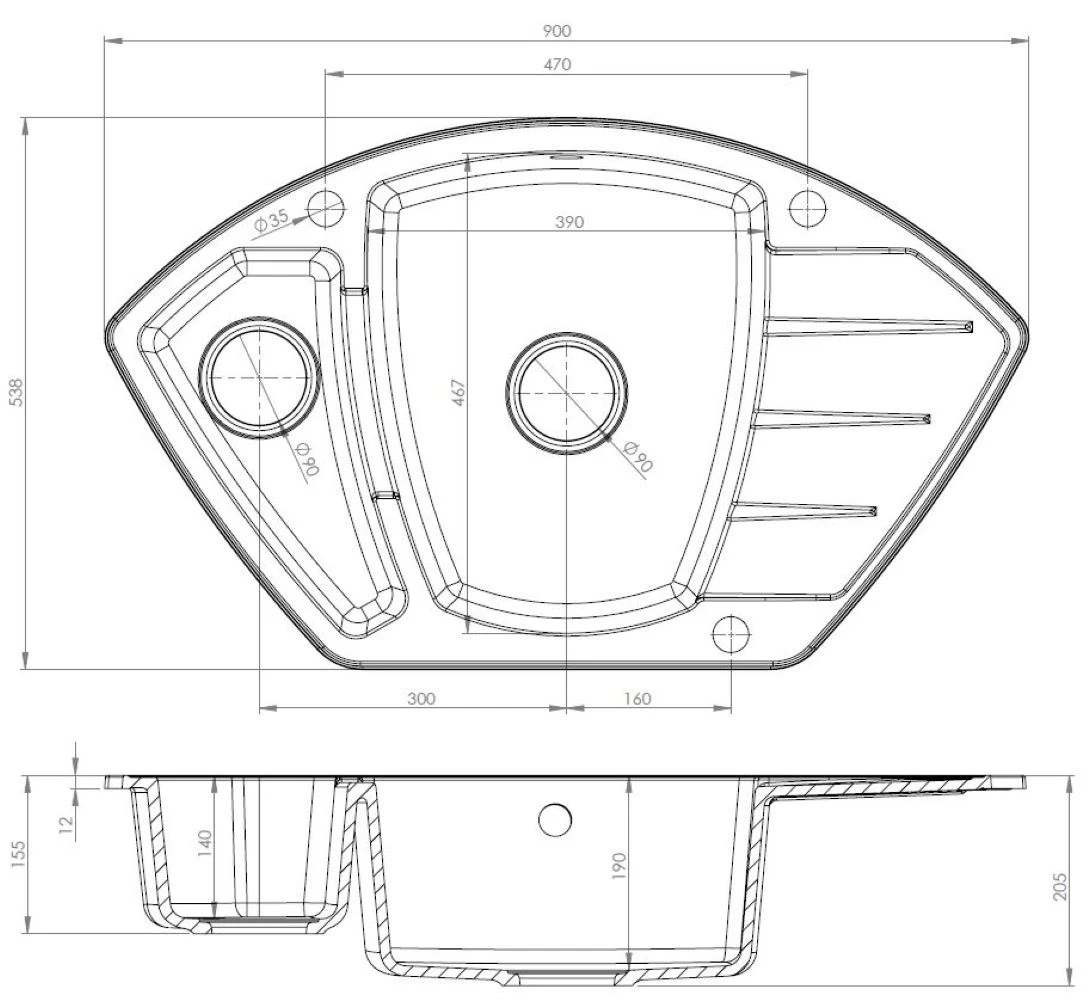 - Średnica odpływu 90 mm