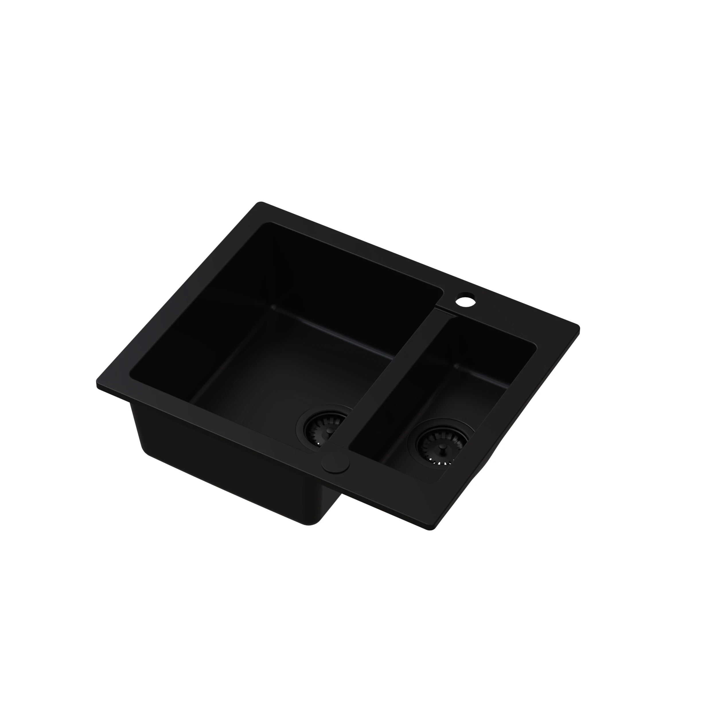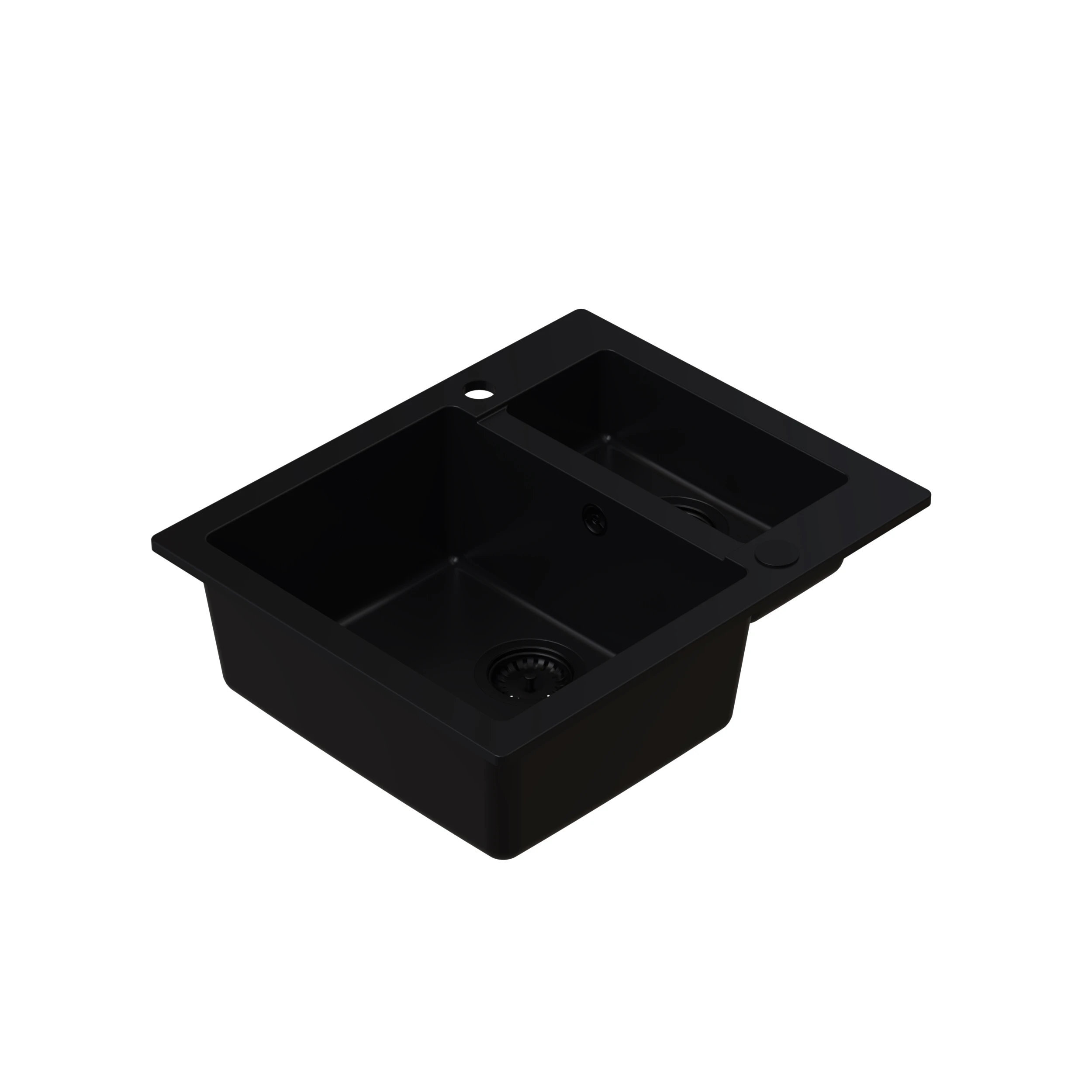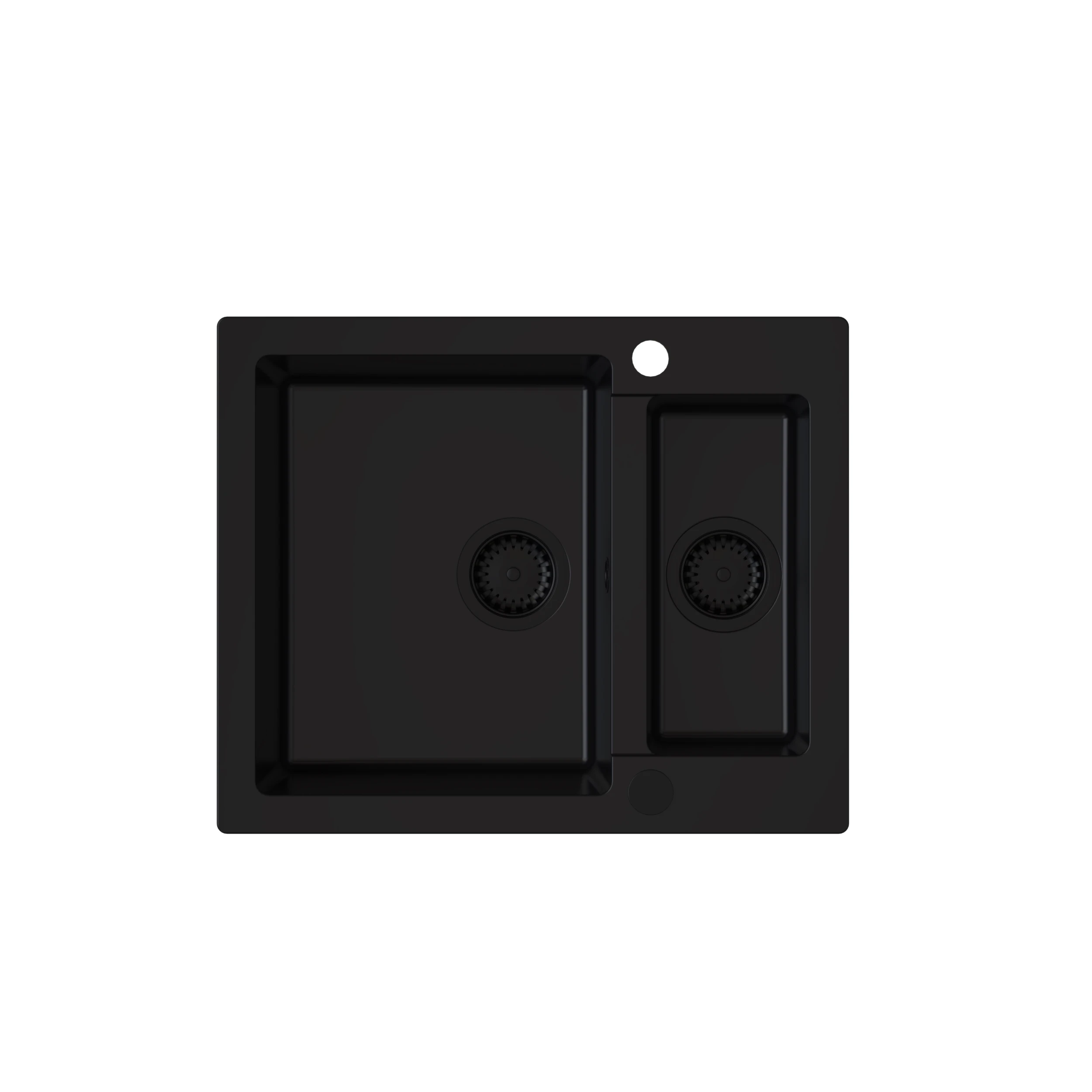Zlewozmywak granitowy RUVETTI SIGNUM 1520 60,5x49,5 cm full black - zlew 1,5-komorowy