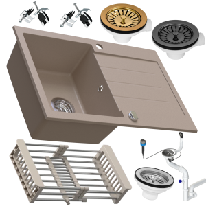 Zlewozmywak granitowy SIQUALY ARBARI BEŻOWY 765x495 mm.- jednokomorowy z ociekaczem