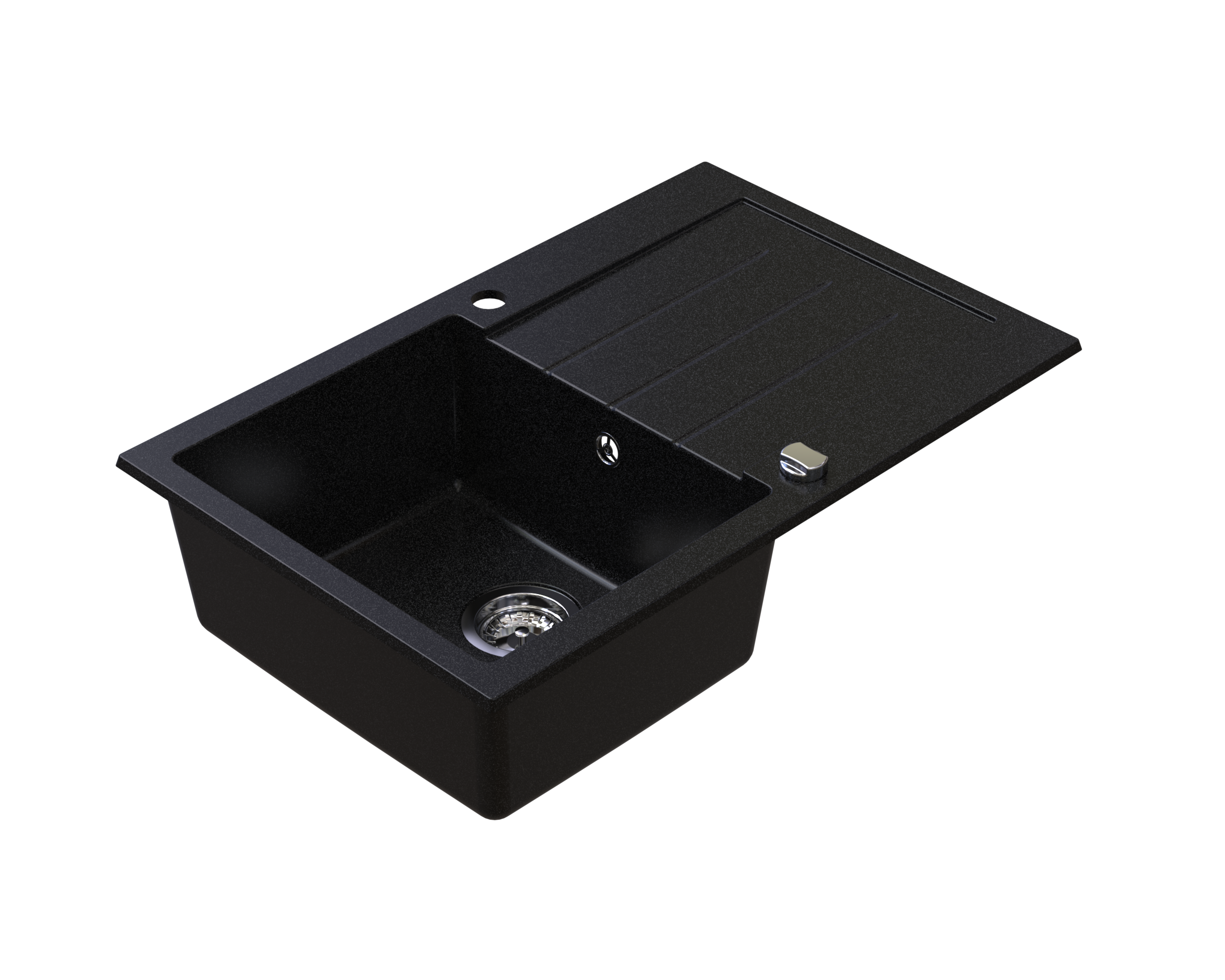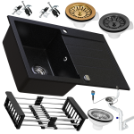 Zlewozmywak granitowy SIQUALY ARBARI CZARNY 765x495 mm.- jednokomorowy z ociekaczem