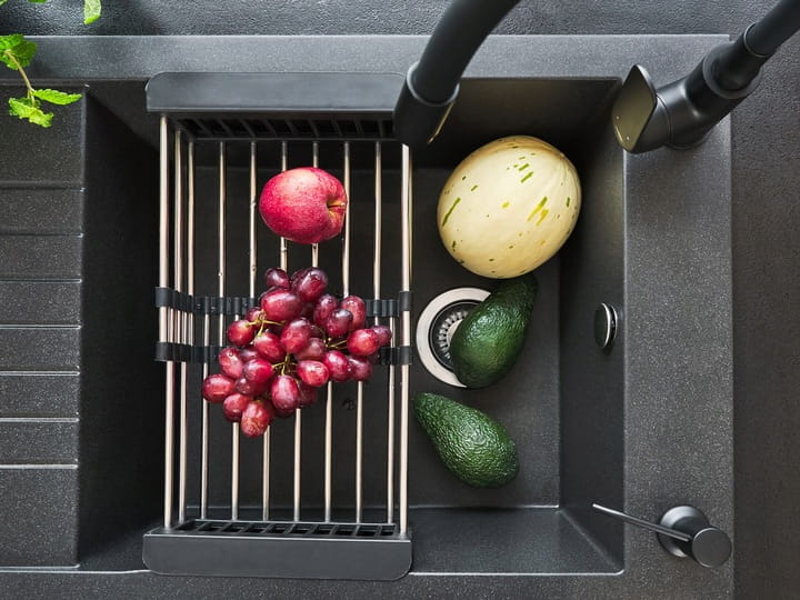 - Dodatkowo w zestawie: ociekarka teleskopowa, karta gwarancyjna, szablon wycięcia otworu pod montaż zlewozmywaka, syfon zlewozmywakowy z automatycznym sterowaniem korka.
