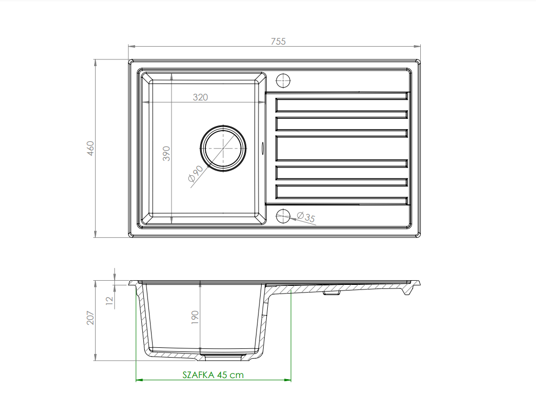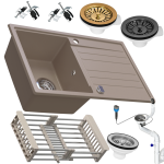 - Dodatkowo w zestawie: karta gwarancyjna, szablon wycięcia otworu pod montaż zlewozmywaka, syfon zlewozmywakowy z automatycznym sterowaniem korka.
