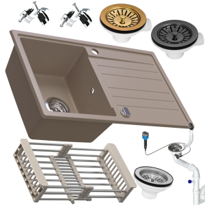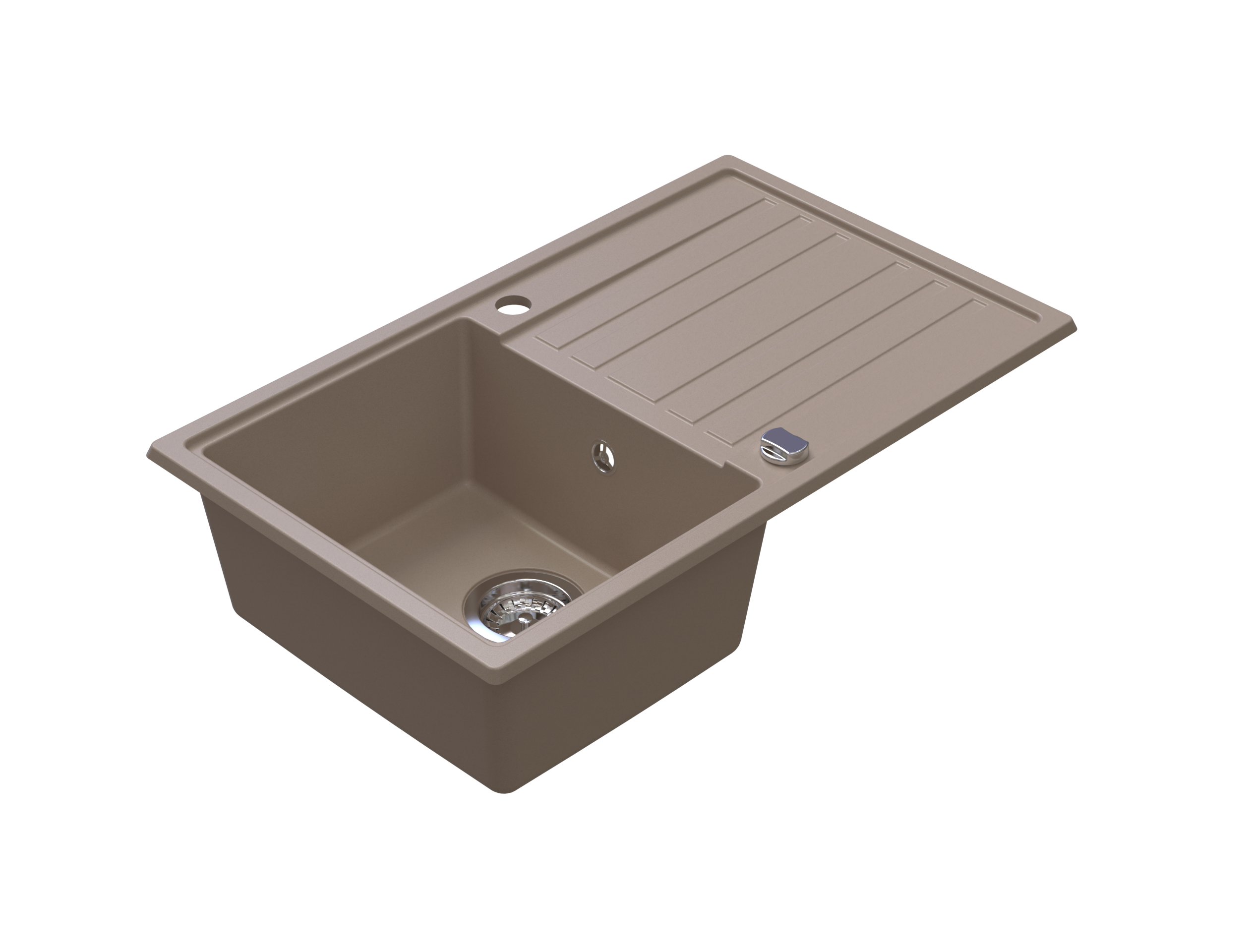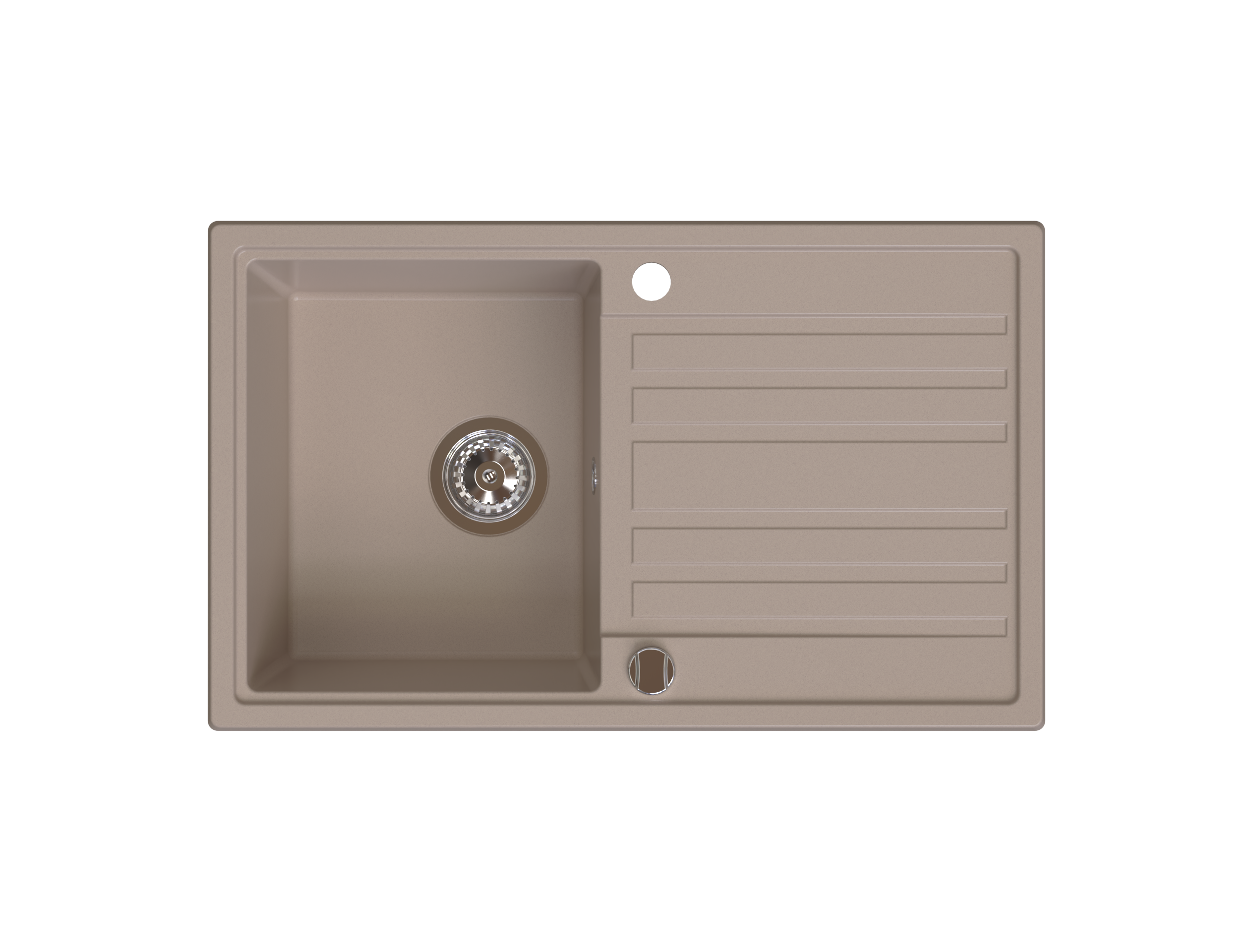 Zlewozmywak granitowy SIQUALY FORLANO BEŻOWY 755 x 460 mm.- jednokomorowy z ociekaczem