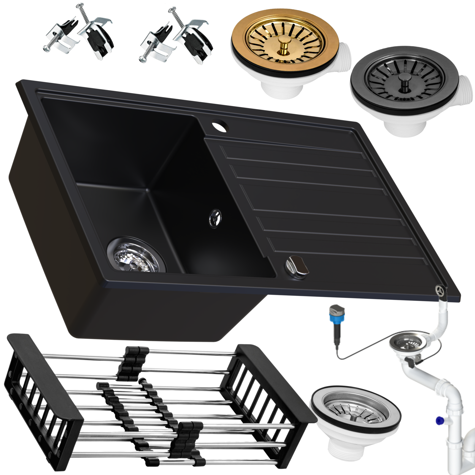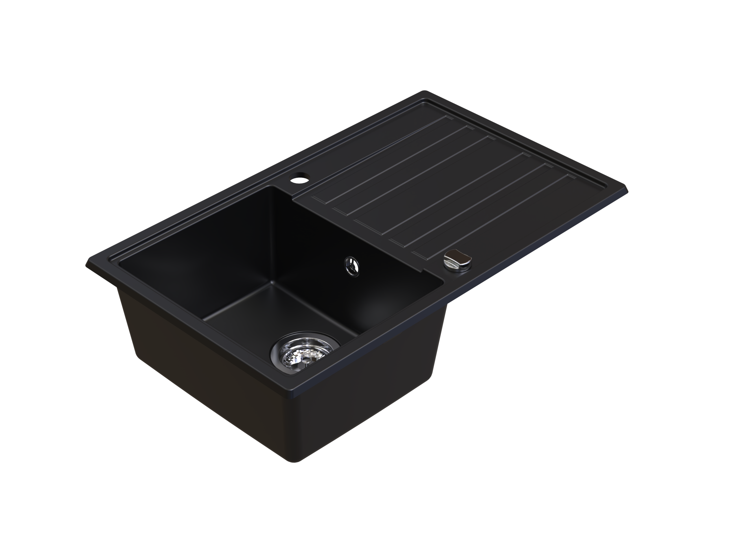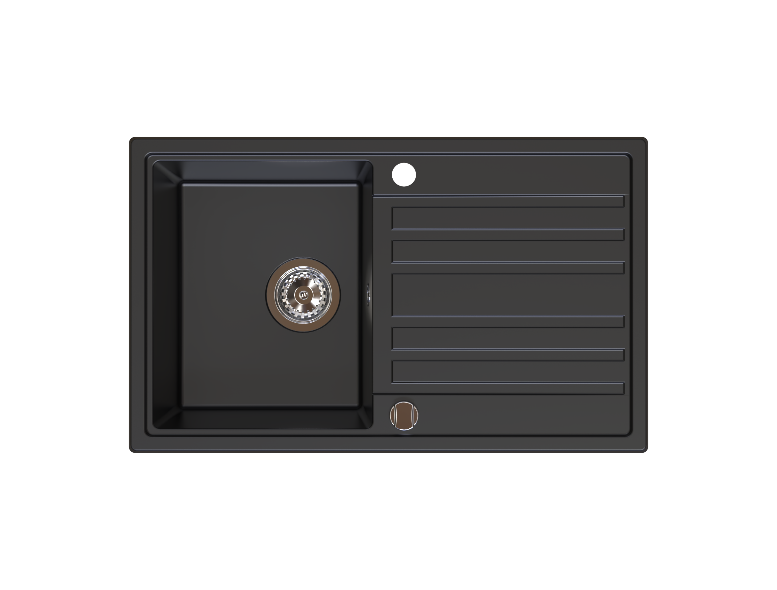 Zlewozmywak granitowy SIQUALY FORLANO CZARNY METALIK 755 x 460 mm.- jednokomorowy z ociekaczem