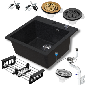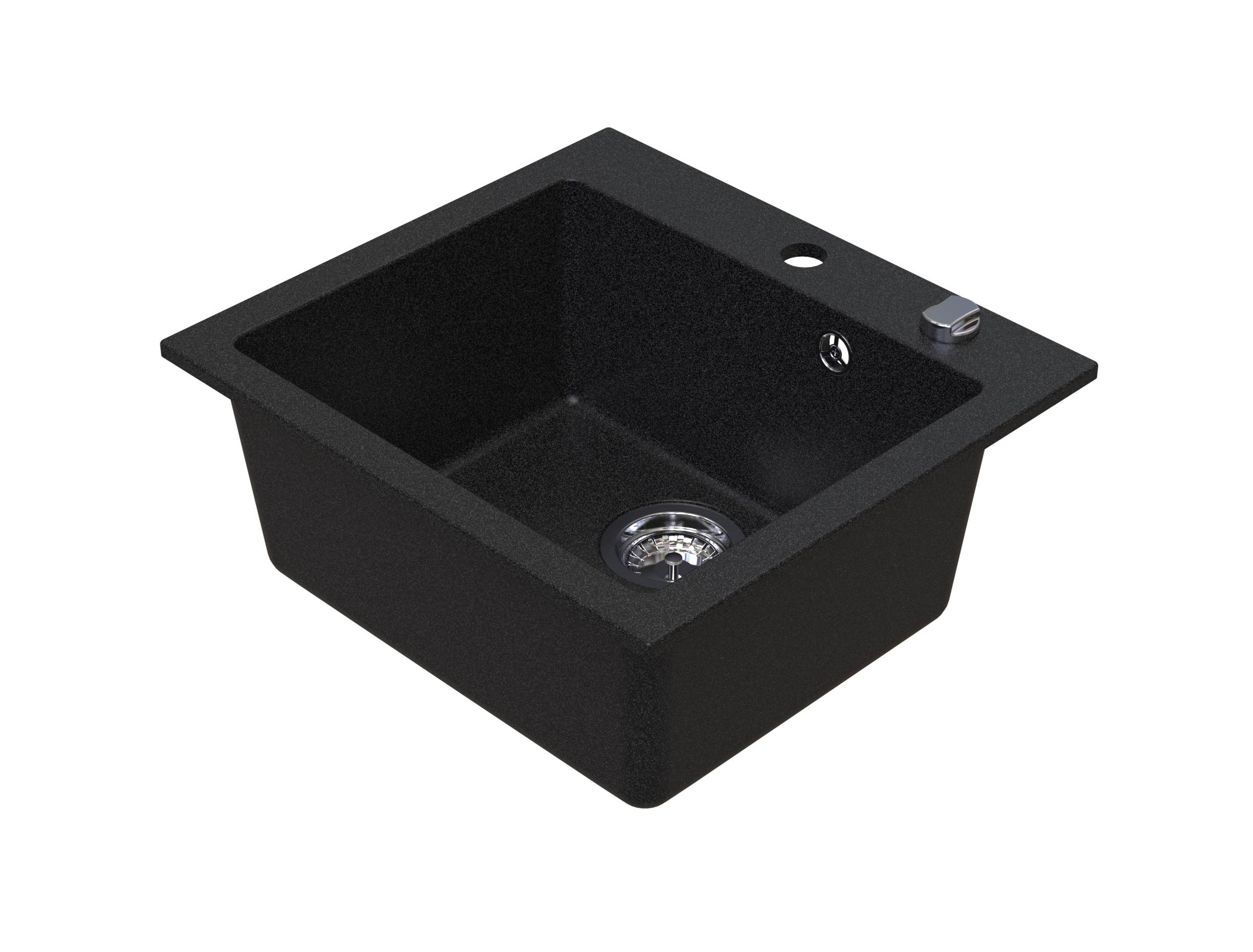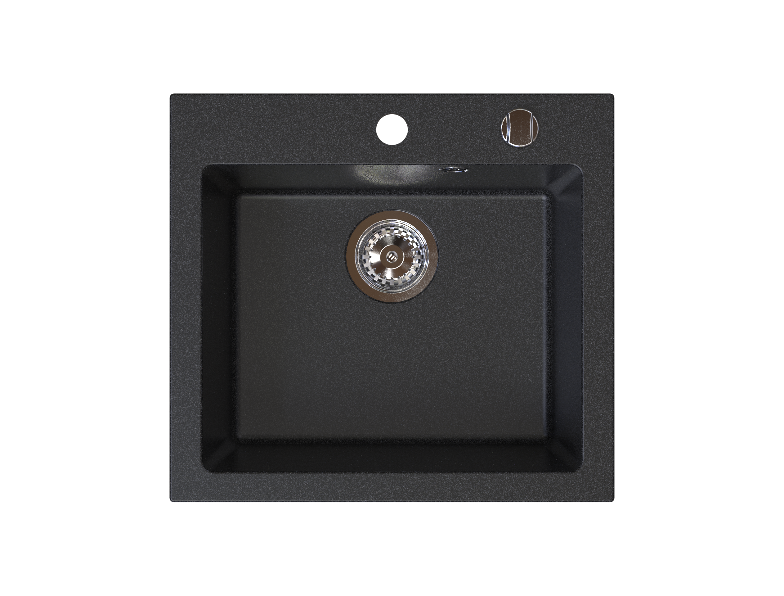 Zlewozmywak granitowy SIQUALY LEONARO CZARNY 490 x 450 mm.- jednokomorowy