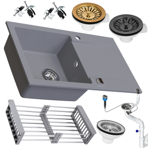 Zlewozmywak granitowy SIQUALY LEONARO SZARY 765 x 450 mm.- jednokomorowy z ociekaczem