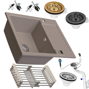 Zlewozmywak granitowy SIQUALY TORRANO BEŻOWY 590 x 500 mm.- jednokomorowy z półociekaczem