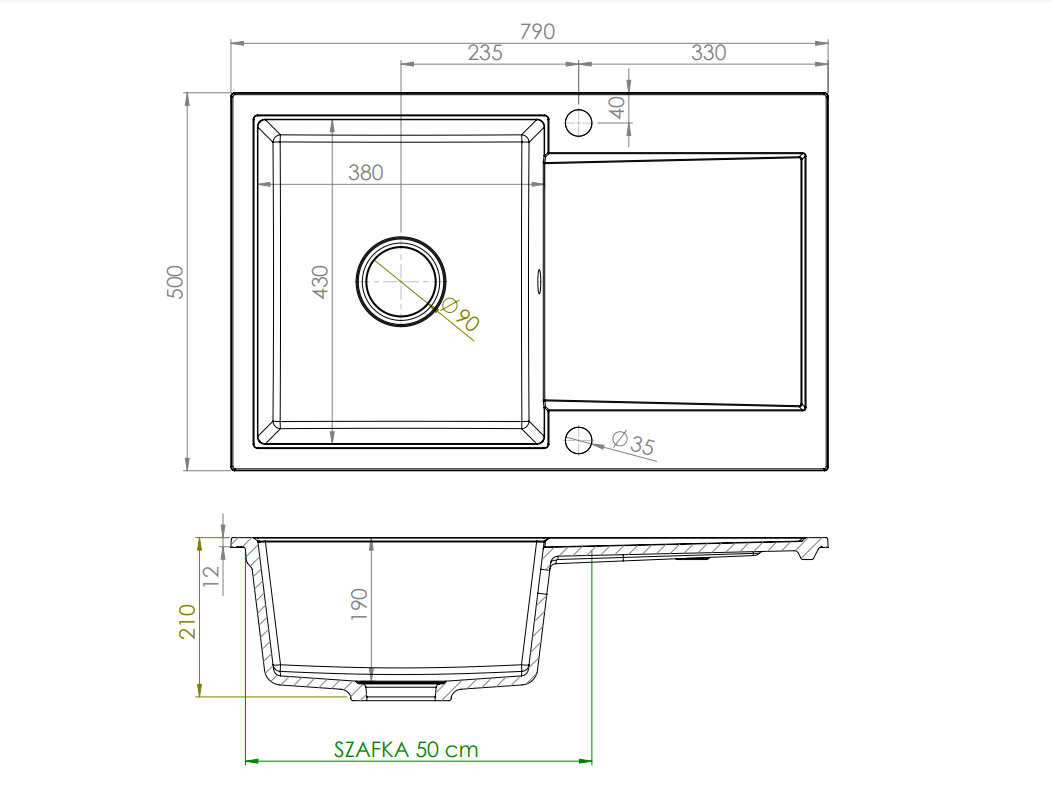 - Dodatkowo w zestawie: karta gwarancyjna, szablon wycięcia otworu pod montaż zlewozmywaka, syfon zlewozmywakowy z automatycznym sterowaniem korka.