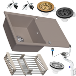 Zlewozmywak granitowy SIQUALY TORRANO BEŻOWY 790 x 500 mm.- jednokomorowy z ociekaczem