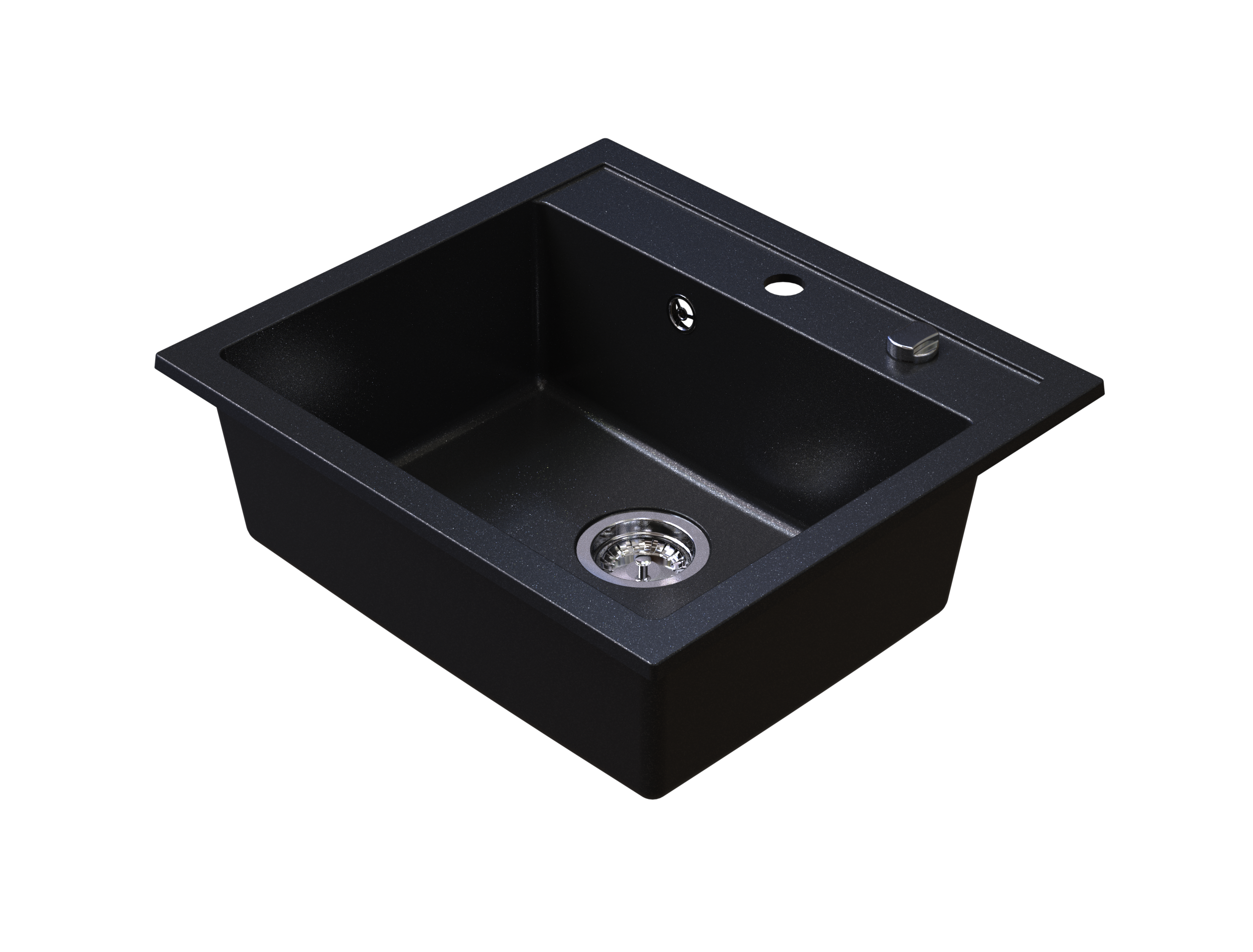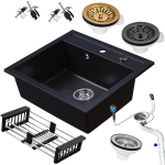 Zlewozmywak granitowy SIQUALY TORRANO CZARNY BROKAT 560 x 510 mm.- jednokomorowy
