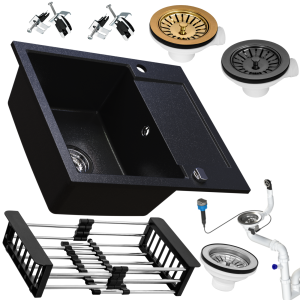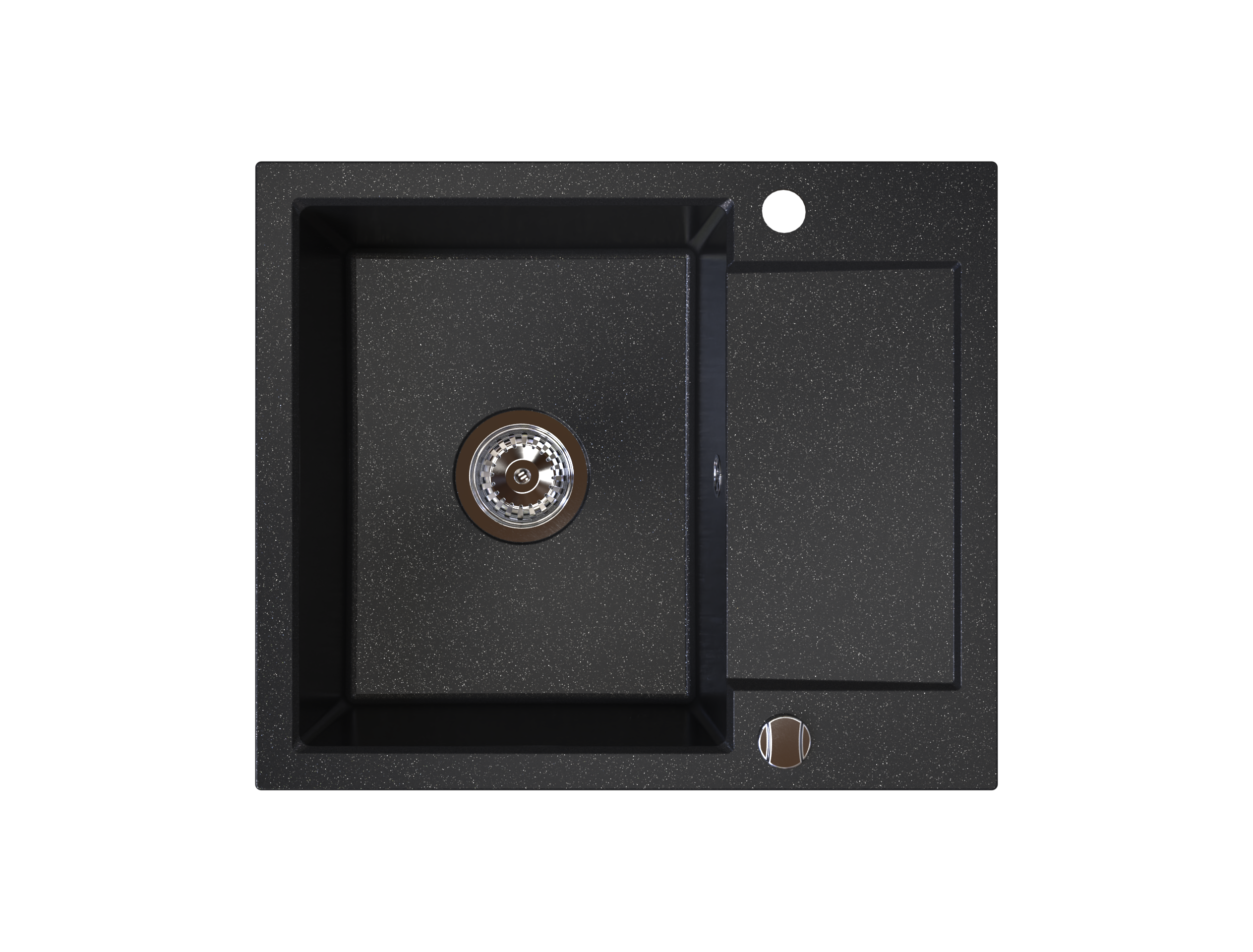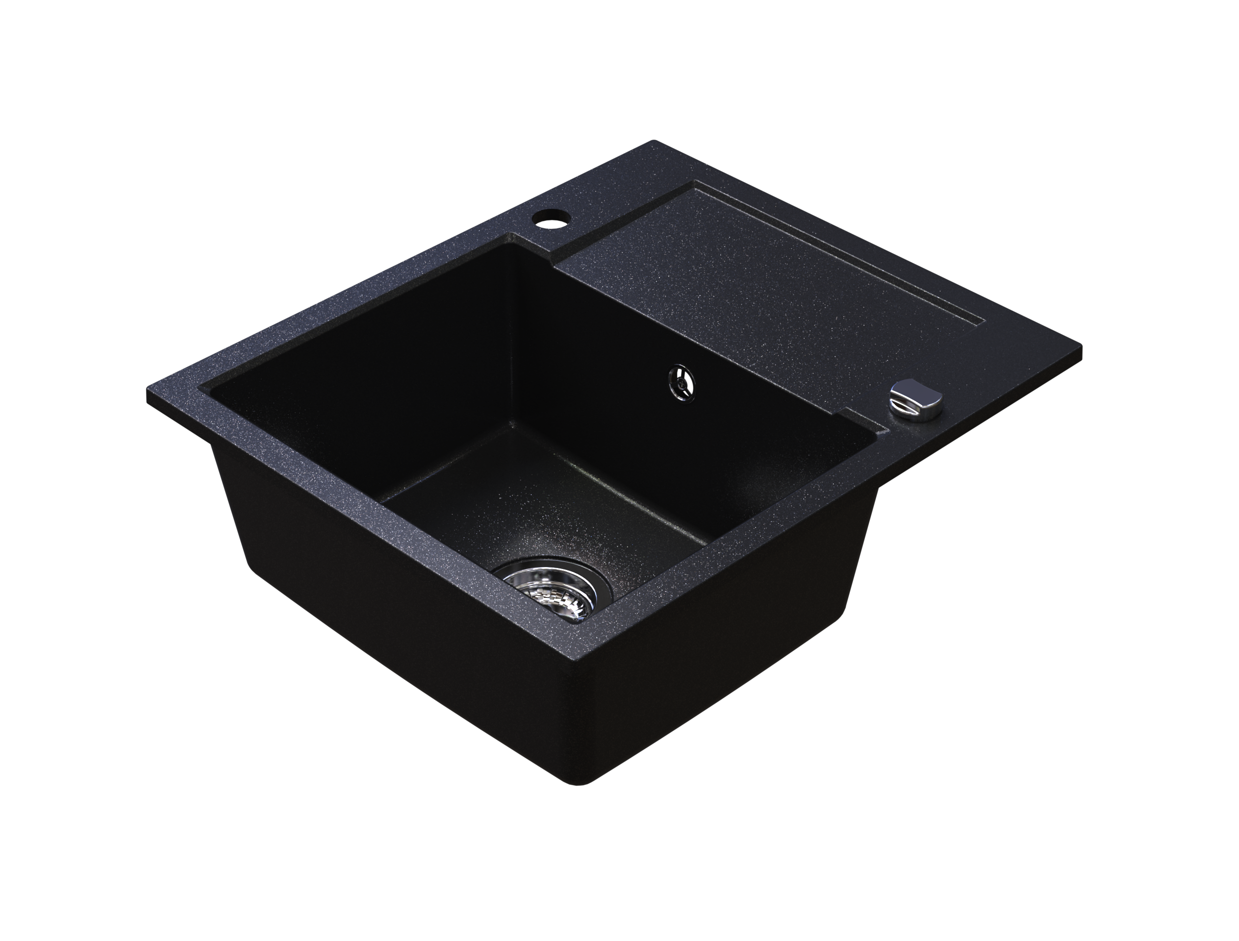 Zlewozmywak granitowy SIQUALY TORRANO CZARNY BROKAT 590 x 500 mm.- jednokomorowy z półociekaczem