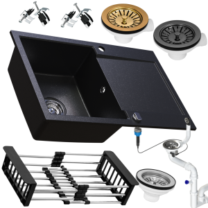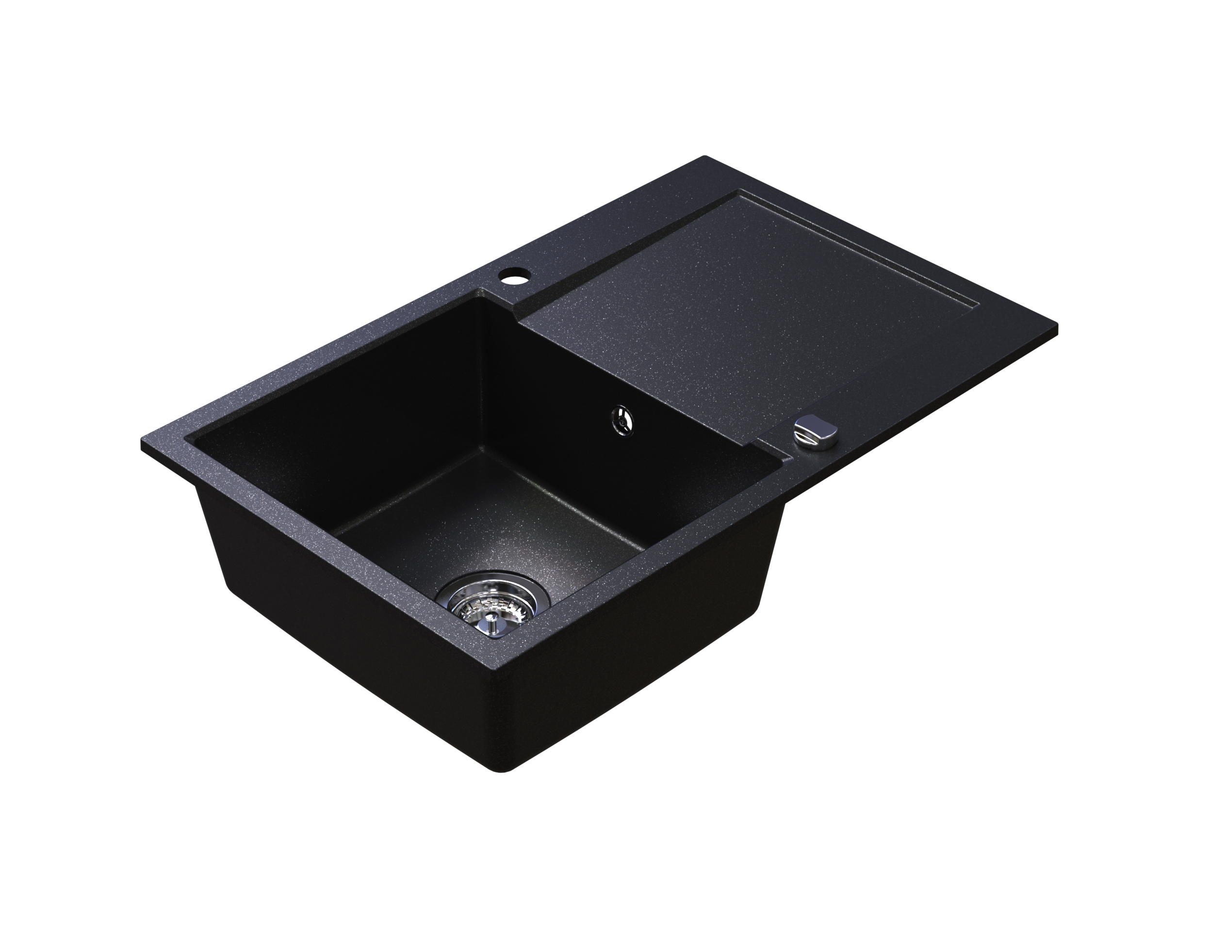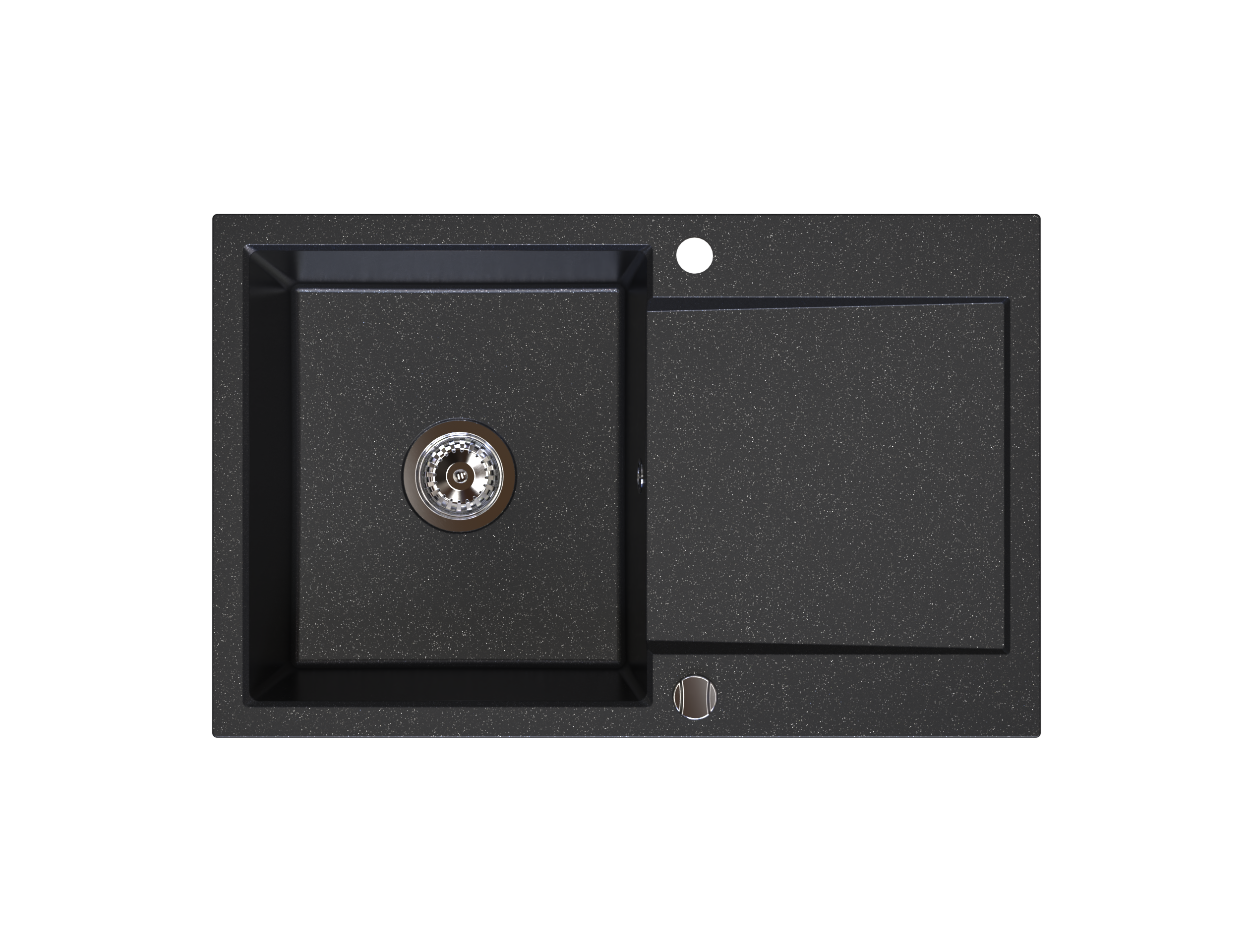 Zlewozmywak granitowy SIQUALY TORRANO CZARNY BROKAT 790 x 500 mm.- jednokomorowy z ociekaczem