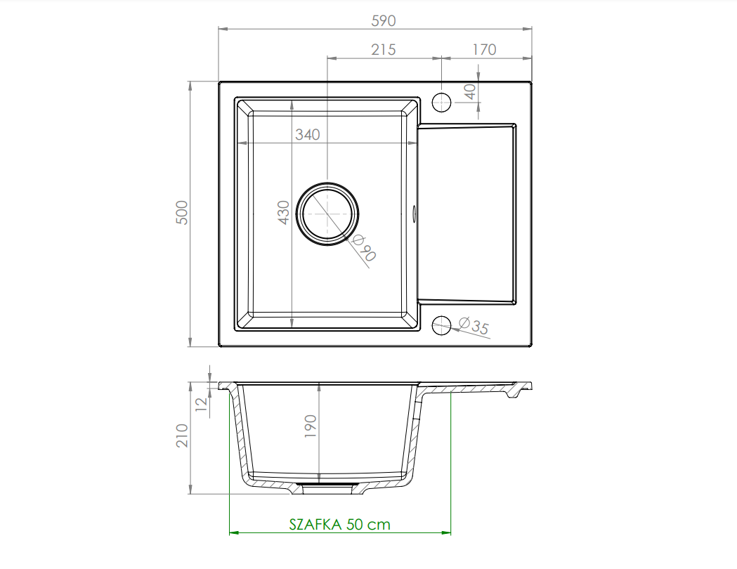 - Dodatkowo w zestawie: karta gwarancyjna, szablon wycięcia otworu pod montaż zlewozmywaka, syfon zlewozmywakowy z automatycznym sterowaniem korka.