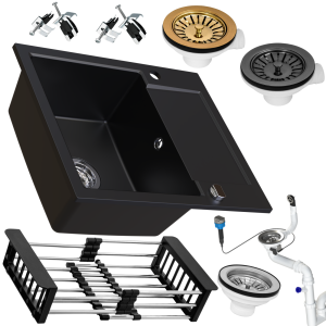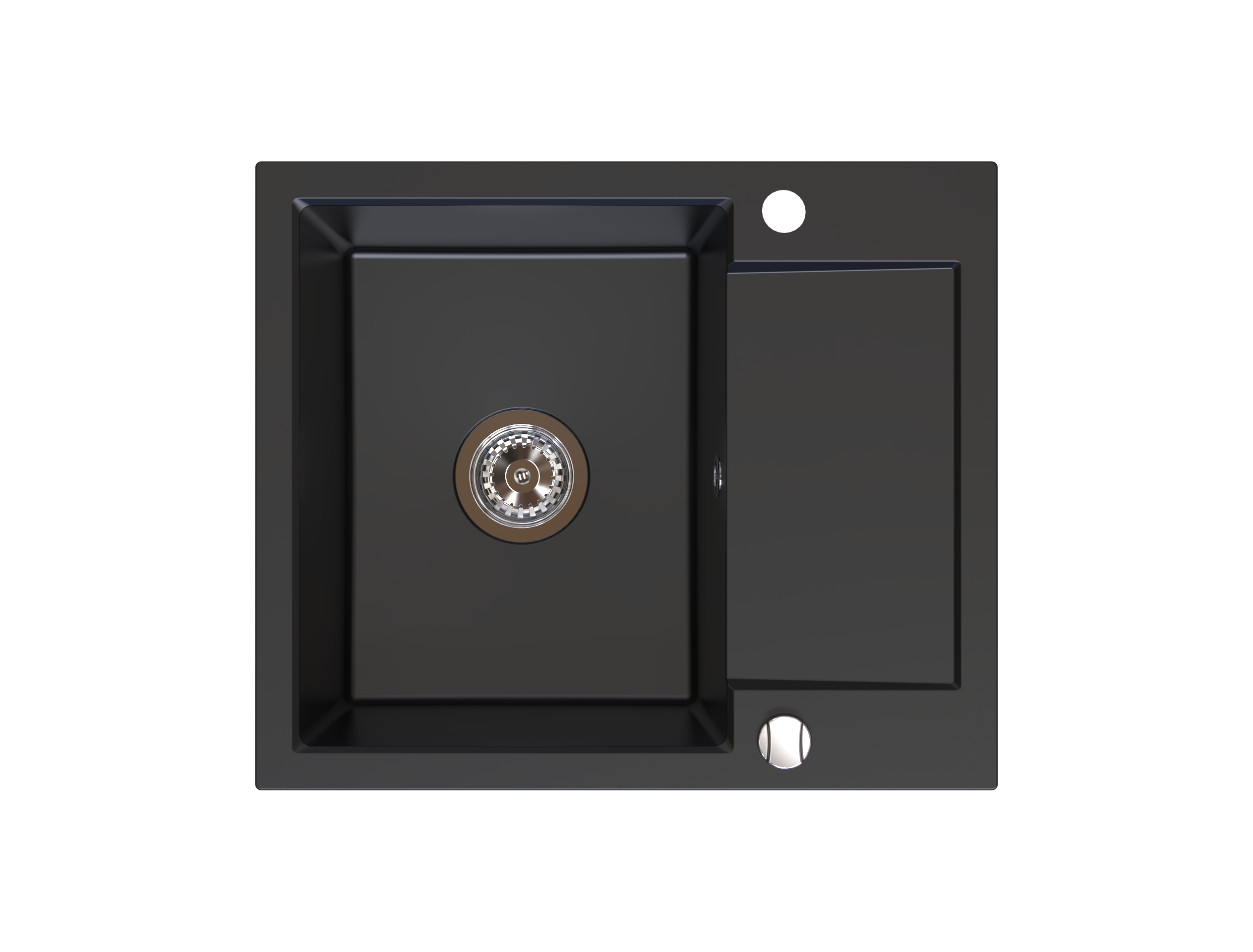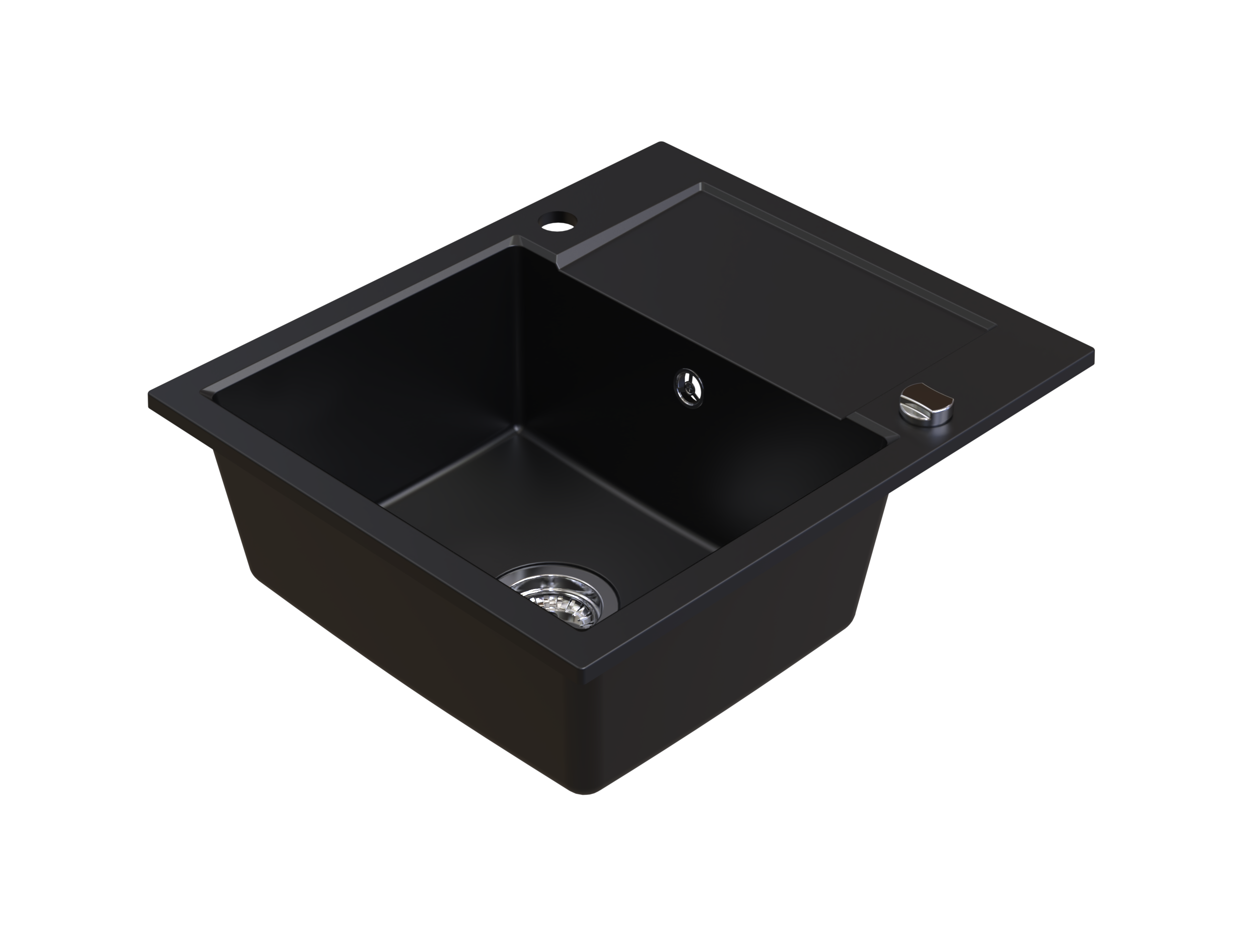Zlewozmywak granitowy SIQUALY TORRANO CZARNY METALIK 590 x 500 mm.- jednokomorowy z półociekaczem