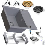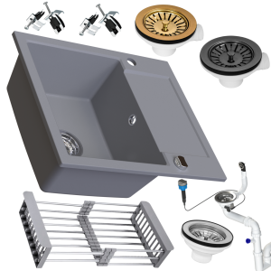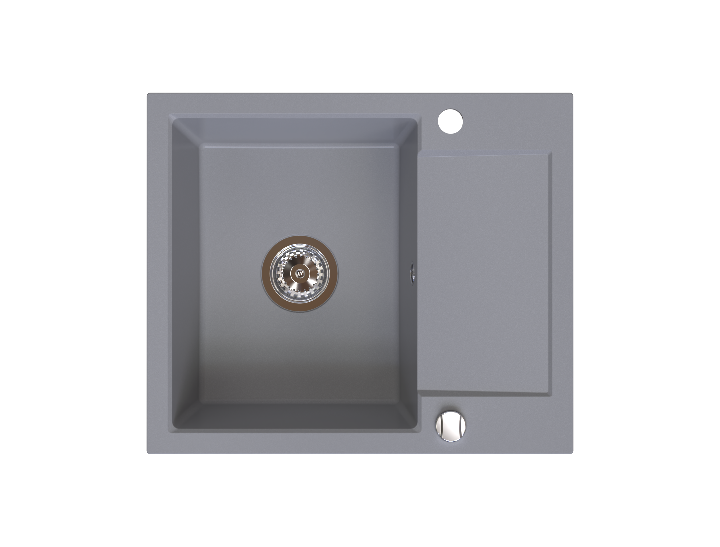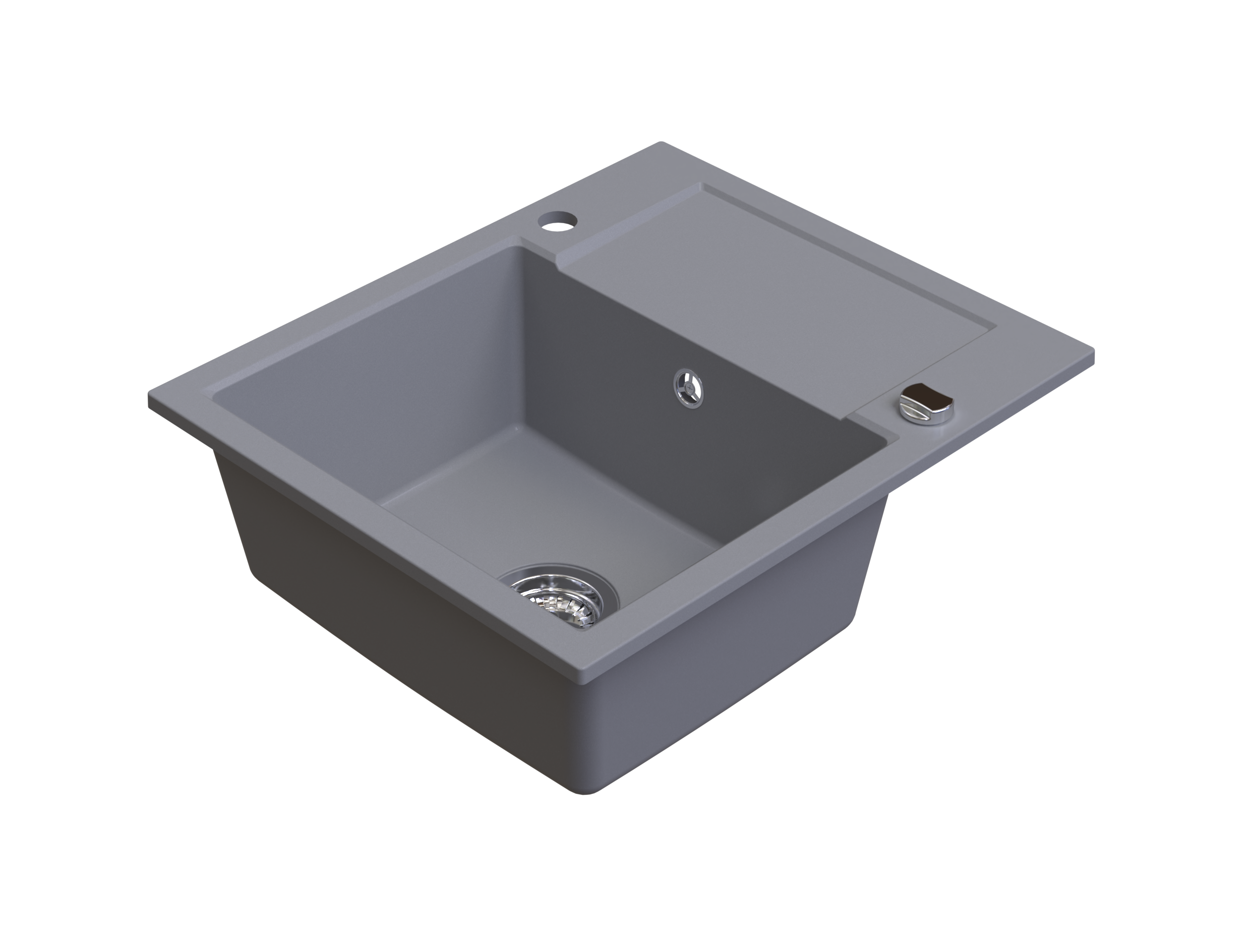 Zlewozmywak granitowy SIQUALY TORRANO SZARY 590 x 500 mm.- jednokomorowy z półociekaczem