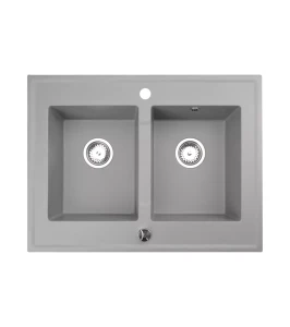 Zlewozmywak granitowy dwukomorowy nakładany GRANDE 80×60 cm – szary