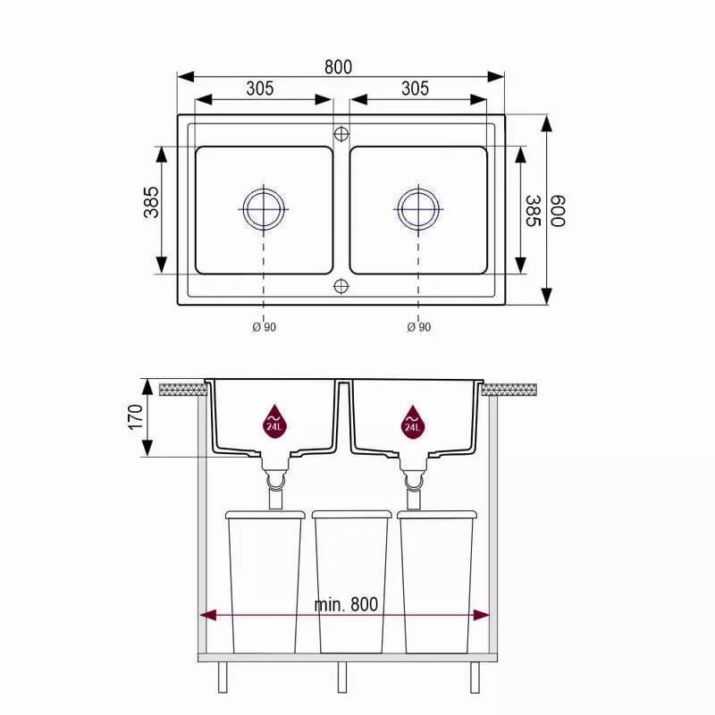 Zlew przeznaczony jest do montażu na szafce o szerokości minimum 80 cm.